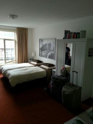 We’ve reached the end of the line in Amsterdam! After getting ready, cleaning up the apartment, and packing our last couple of things, we said goodbye to our great hosts and made our way to the train station (not before we stopped to get Scott his juice fix though). If you’re ever in Amsterdam and need a place to stay, I can definitely recommend our apartment. The hosts, Hans and Floor, live in the same building and they rent out two other apartments. We stayed in this one, but they have a second one just next to it which is a bit bigger. Just look at their profile via the link and you can easily learn more about them and look at the places they have for rent. Speaking of looking though, here are a couple of pictures from our place that we took just before we left this morning:
