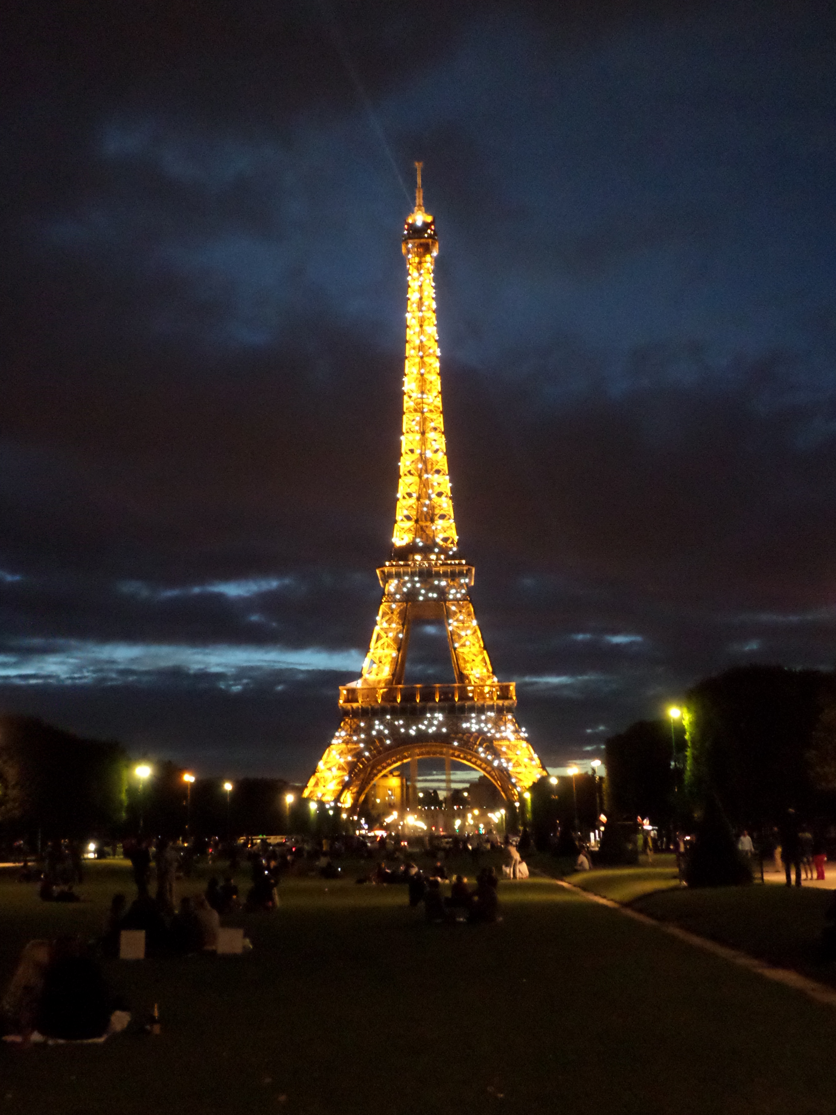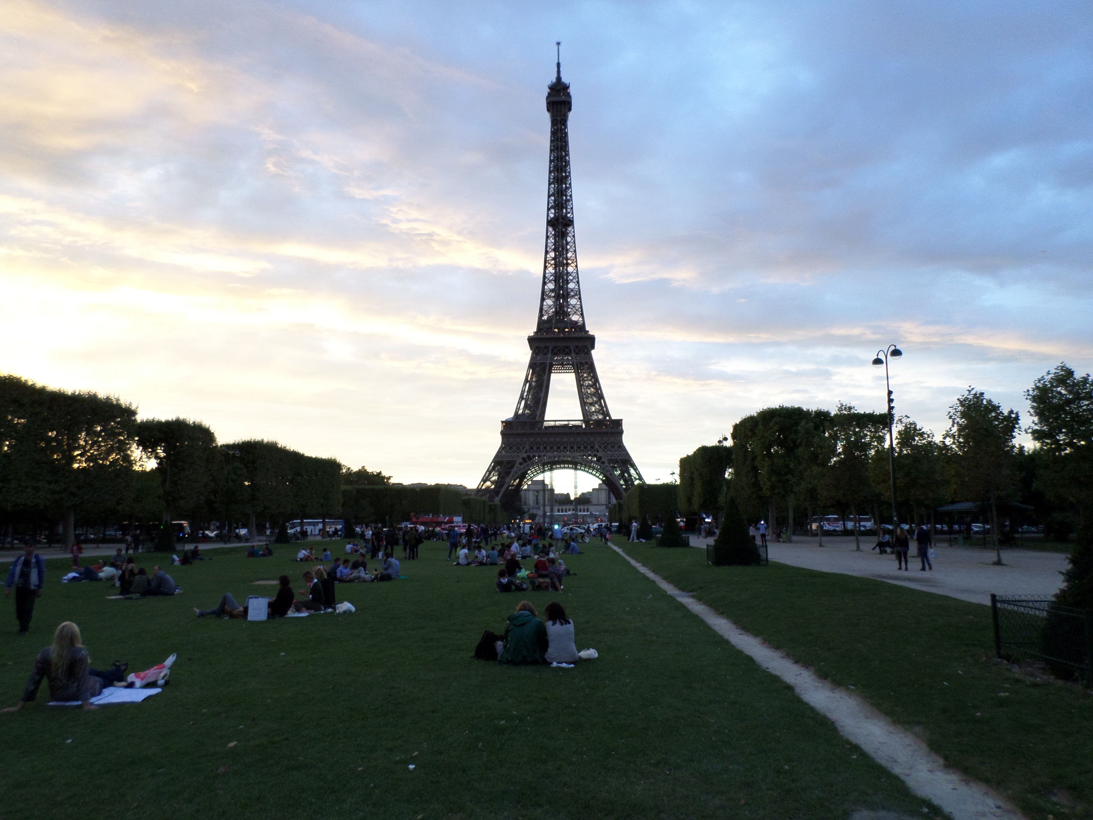 We had a great time on our picnic! The weather was great (as was the company!) and it was so amazing to be just sitting on the Champ de Mars while enjoying bread and cheese with the Eiffel Tower above us. It was still pretty light when we got there, but as it got darker outside, the tower lit up. We even got to see a cool light show!