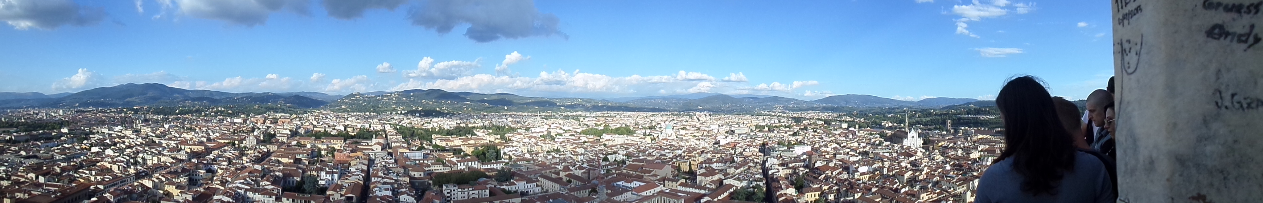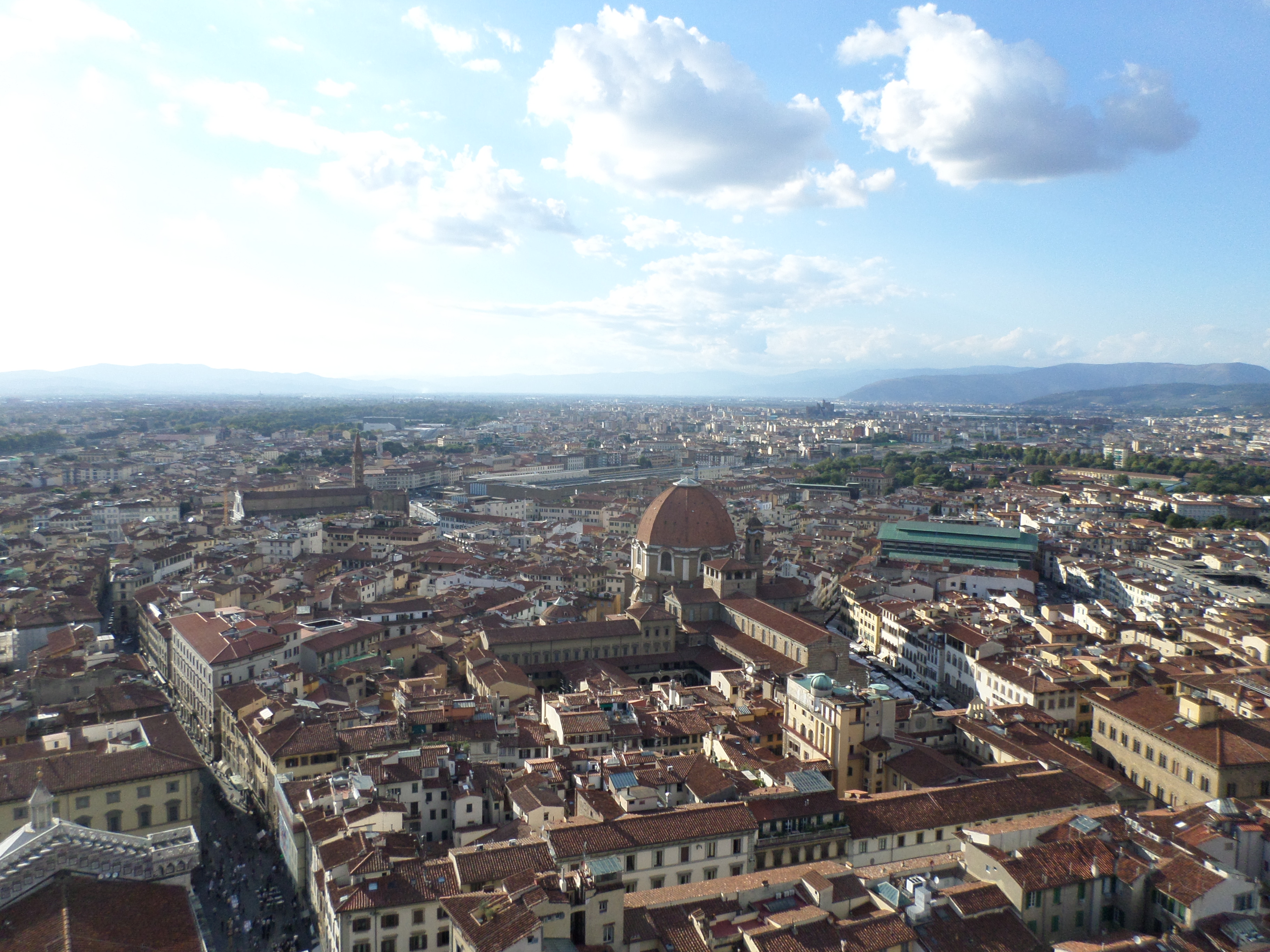 After a few minutes of wandering around to figure out where we needed to get tickets for the other buildings (FYI – the ticket office is almost directly in front of the baptistry), we got our all-inclusive ticket for β¬10. The ticket has a barcode and it gets you into each of the other buildings one time (the ticket is good for six days, but once you scan it, you have to use it within 24 hours). Pretty slick system! We decided we would continue our trend of climbing stairs on this trip by going to the dome, which requires you to climb nearly 450 stairs. TAKE NOTE – there is no elevator and no great way out once you start climbing, so be very sure that you want to do this before you start. Also, the stairways get very narrow at times and there is a stretch of stairs where you have to deal with people coming back down from the top, so it gets very crowded. If you are at all claustrophobic, I wouldn’t recommend this one! If you can do it though, DO IT! The views you get from the top are breathtaking, especially on a clear day. I included a few more pictures than normal just to show those views off, so check them out below.