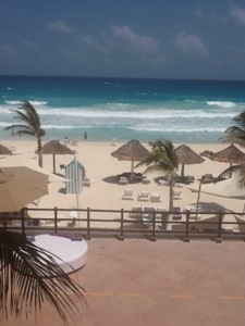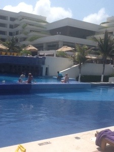 I wish I had something more exciting to report aside from fun in the sun, but alas, I really don’t. Too bad. π We had a lot of fun on Sunday here in Cancun though! The last member of our party arrived around mid-morning (she wasn’t able to come on Friday, so she flew in yesterday instead), so we basically did the same thing we did on Friday and Saturday, but with seven people instead of six. Fun, right? And she got an awesome room, too! I guess that’s the benefit to coming in a couple of days later. I imagine a number of people had checked out when she arrived, especially since we’re at the tail end of the spring break season, so there were probably a lot more room options. So I’m maybe a little bit jealous of her non-musty, king-bedded, balcony-having, ocean view room. But that’s okay. π