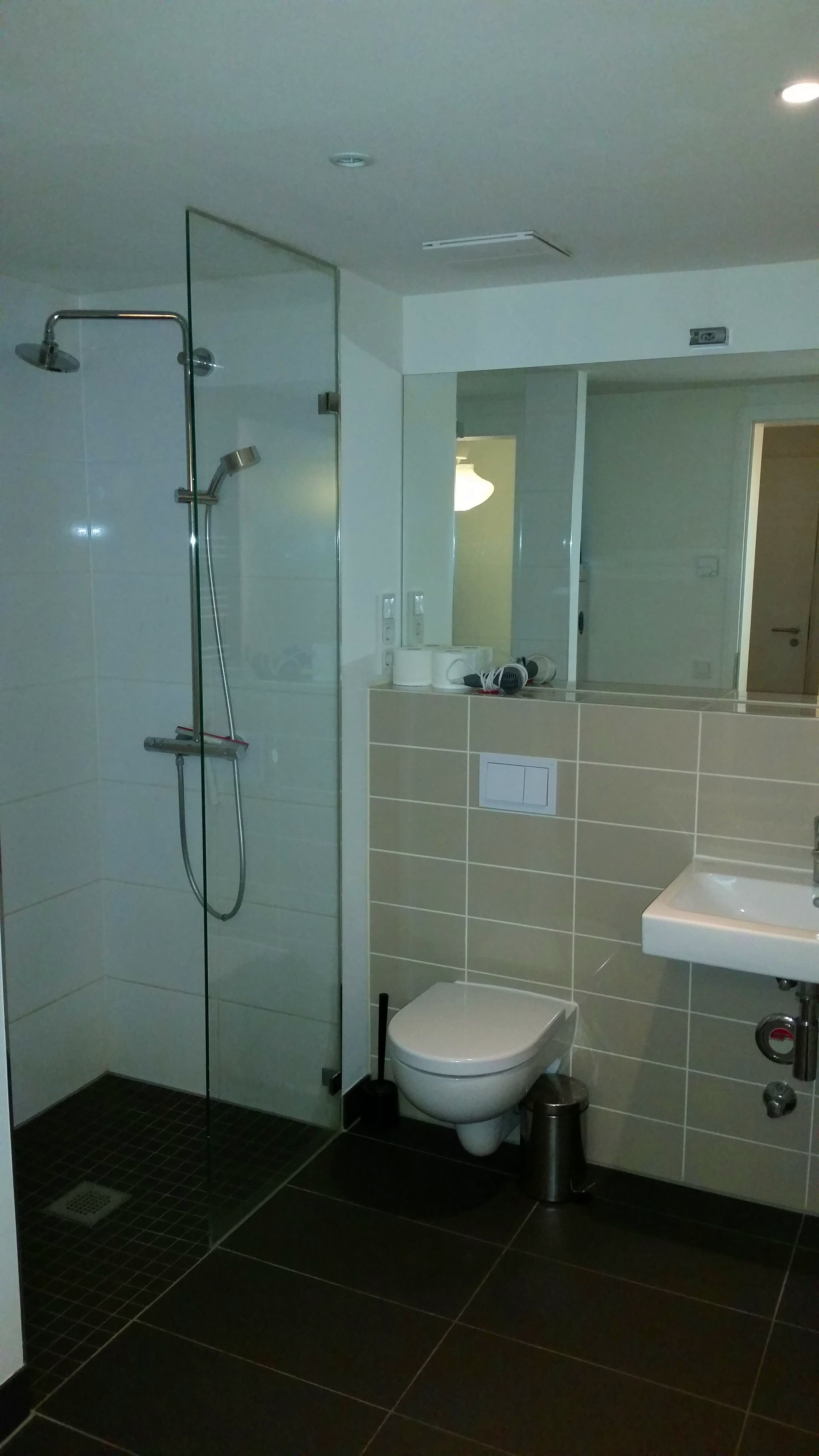 Nice bathroom! Although you can’t see them in the picture, there’s also a small washer and dryer in the corner of the bathroom. So convenient to have that – makes it easier to pack lighter.