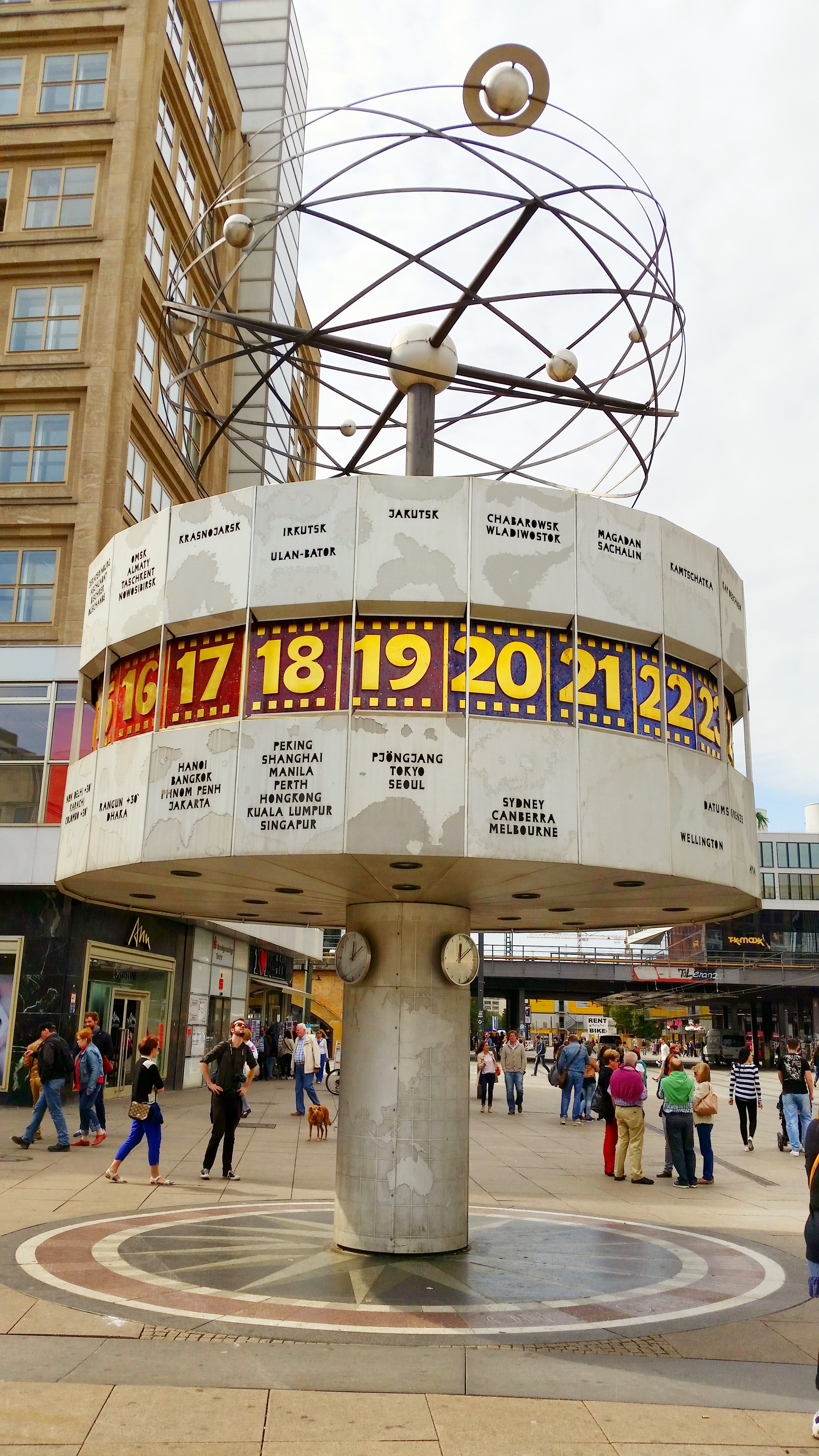 The world clock in Alexanderplatz, which is near our apartment and we passed by on our way to the Brandenburg Gate.