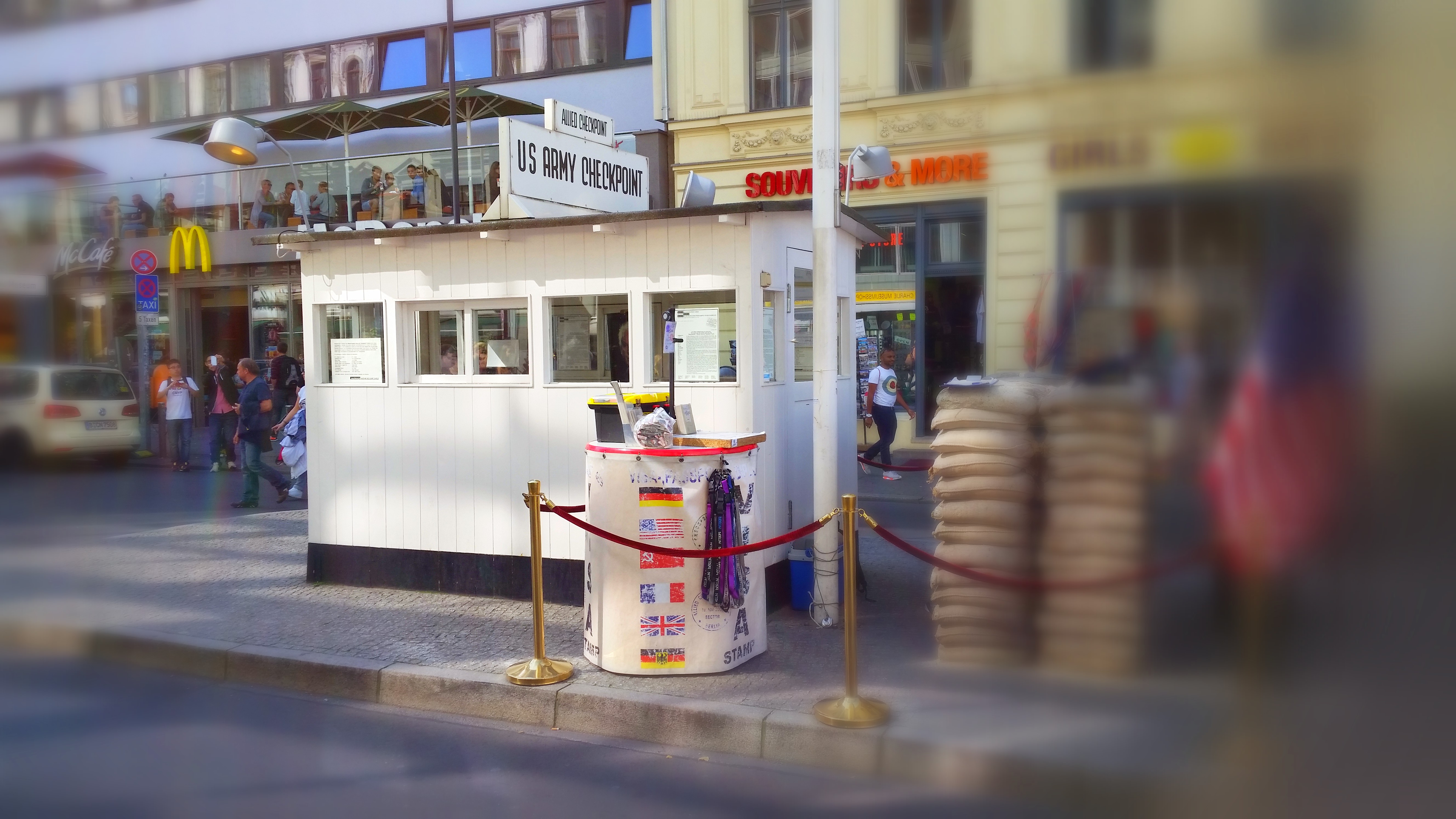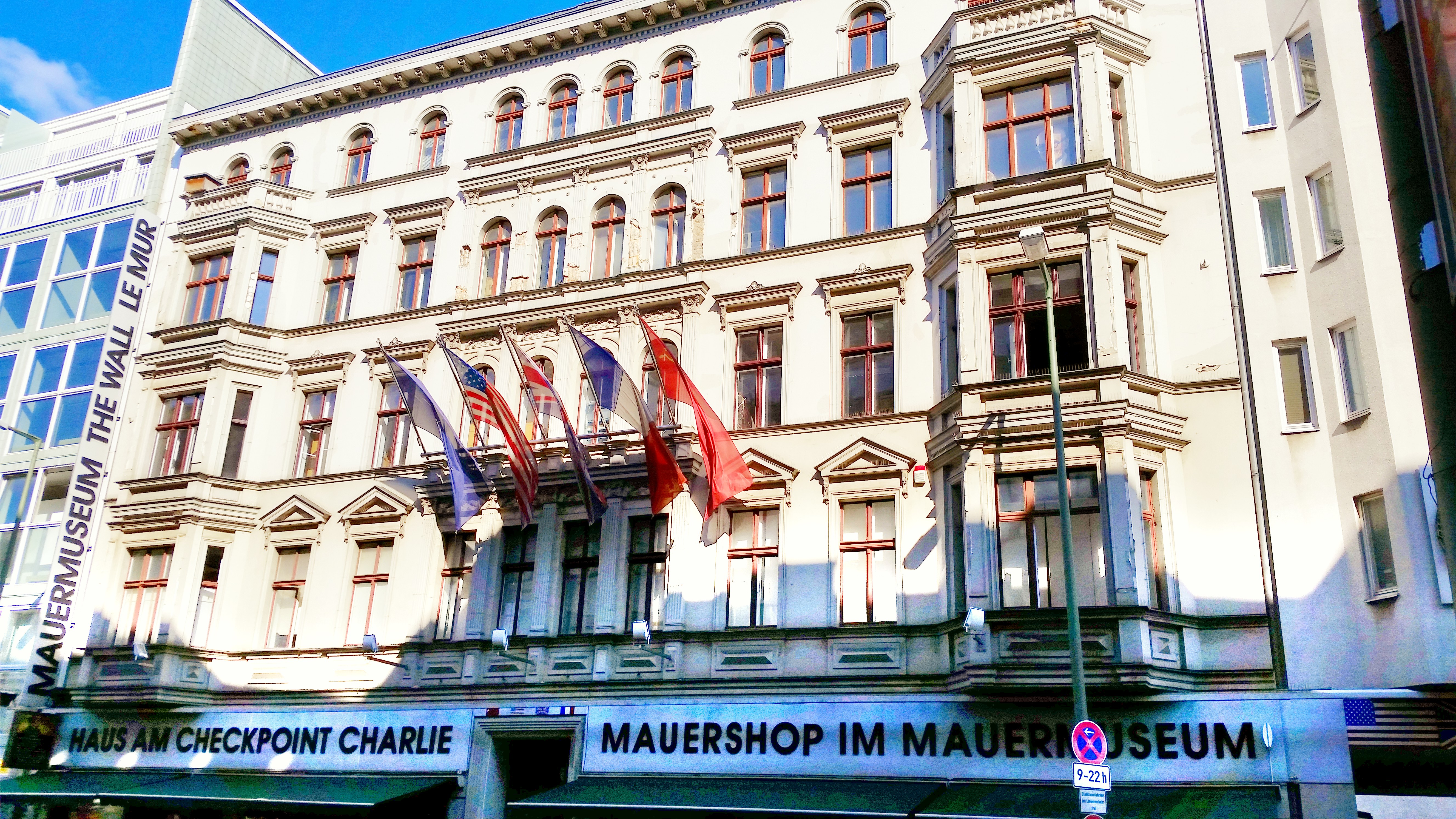 Literally steps from the Topography of Terror is something far more light-hearted – Curry at the Wall. We stopped for a quick lunch of currywurst and chips (fries, that is) – delicious! I’d never had currywurst before, but it was very tasty! With bellies full, we made our way to one more destination – Checkpoint Charlie. While it serves no official function today, in the days of the Berlin Wall, it was a well-known crossing between East and West Germany and represented a dividing point between two halves of the world. As with any touristy site, there are lots of touristy things around it, including people dressed in MP uniforms who gladly take a picture with you…for a price. Just avoid them. 🙂 Next to the checkpoint is the Checkpoint Charlie Museum, which we heard was very detailed and worth the €12.50 entry fee, so we decided to visit it. The museum is indeed very detailed, but the flow of it is a bit odd in that it doesn’t always seem to have one! Still, there’s lots of good information, letters, exhibits, etc. about the separation between East and West Germany. It’s odd to think that Germany only became a united country again in 1990 – very much in my lifetime. There’s some good education to be found in this museum, so along with everything else we did today, I recommend it to anyone visiting Berlin.