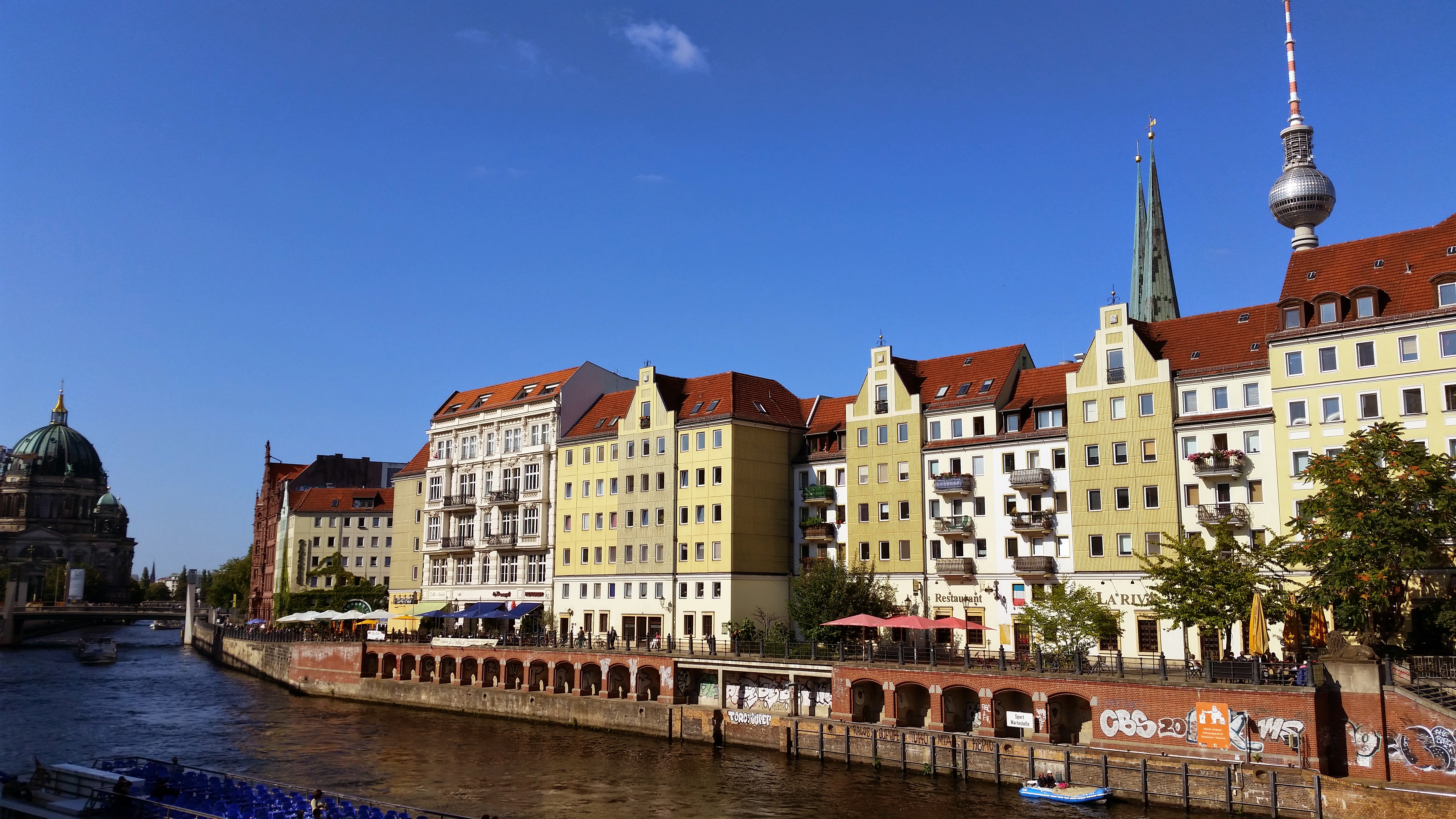 Berlin is shaping up to be a great city to visit! While neither Scott nor I have gotten a “this feels like a place I could live” vibe (like the one I get in London, for example), we’re having a good time seeing all the sights. And the almost-perfect weather has been a bonus! Obviously you take a gamble with weather whenever you travel, but we’ve definitely enjoyed some pretty great weather since we’ve been here. Which was especially important today, since it felt like we did a ton of walking around (my Fitbit tells me I was close to 20,000 steps today, so yes, a lot of walking)!