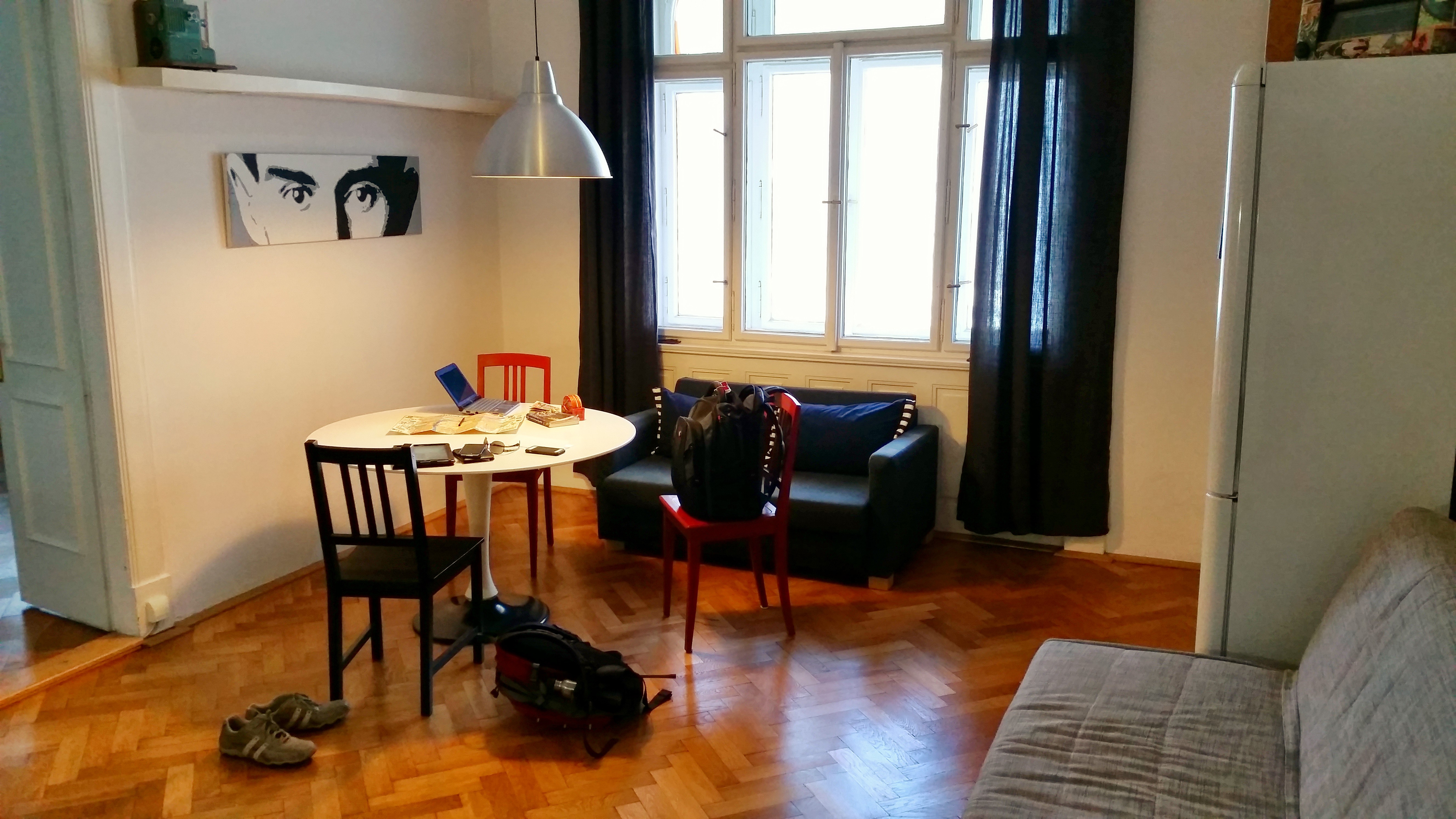We met our Airbnb host at our apartment and got a thorough education in places to go, things to eat, and public transport to use while in Prague. The apartment is another good one! The building is definitely old, but the apartment is comfortable and spacious and as a bonus, it has two fans in it! I always sleep with a fan on at home (both because I like the noise and I get hot really easily), but I never expect to find one when I travel. Needless to say, it was a nice surprise to find two here. The location also seems to be great – near a couple of markets and bakeries, an ATM, lots of places to eat, and almost everything we want to see while we’re here. Although I’ve never had a reason to doubt information from Airbnb, it’s still nice to get confirmation when seeing a place in person for the first time. And having a host who is clearly knowledgeable and passionate about the city is a big bonus. Travel tip – if you’re using Airbnb (or something like it) to book your accommodations, be sure to glean as much info from your hosts as possible. Chances are, they’ll have great recommendations, language/culture tips, and more.