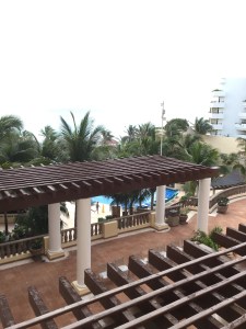 I realize iPads don’t take the best photos, so you can’t see the ocean that well, but it is a great view. And the pool chairs you can see right by where that person is walking (near the yellow cone) are the ones we reserved. We’re following the same process we did last year, where part of the group gets up really early (4 or 5 AM) each morning to put our towels out to hold the chairs we want. This is especially important with seven people! If you walk out there at 7 AM, all the chairs have already been claimed. Scott thought he spied different towels on a couple of our chairs, so he went down to look and, sure enough, someone had moved some of our towels and tried to take our chairs. Needless to say, Scott handled business on that and put our towels back. 🙂 It’s really frustrating that people will just come along and do that, but it just reinforces how diligant we have to be to get chairs together.