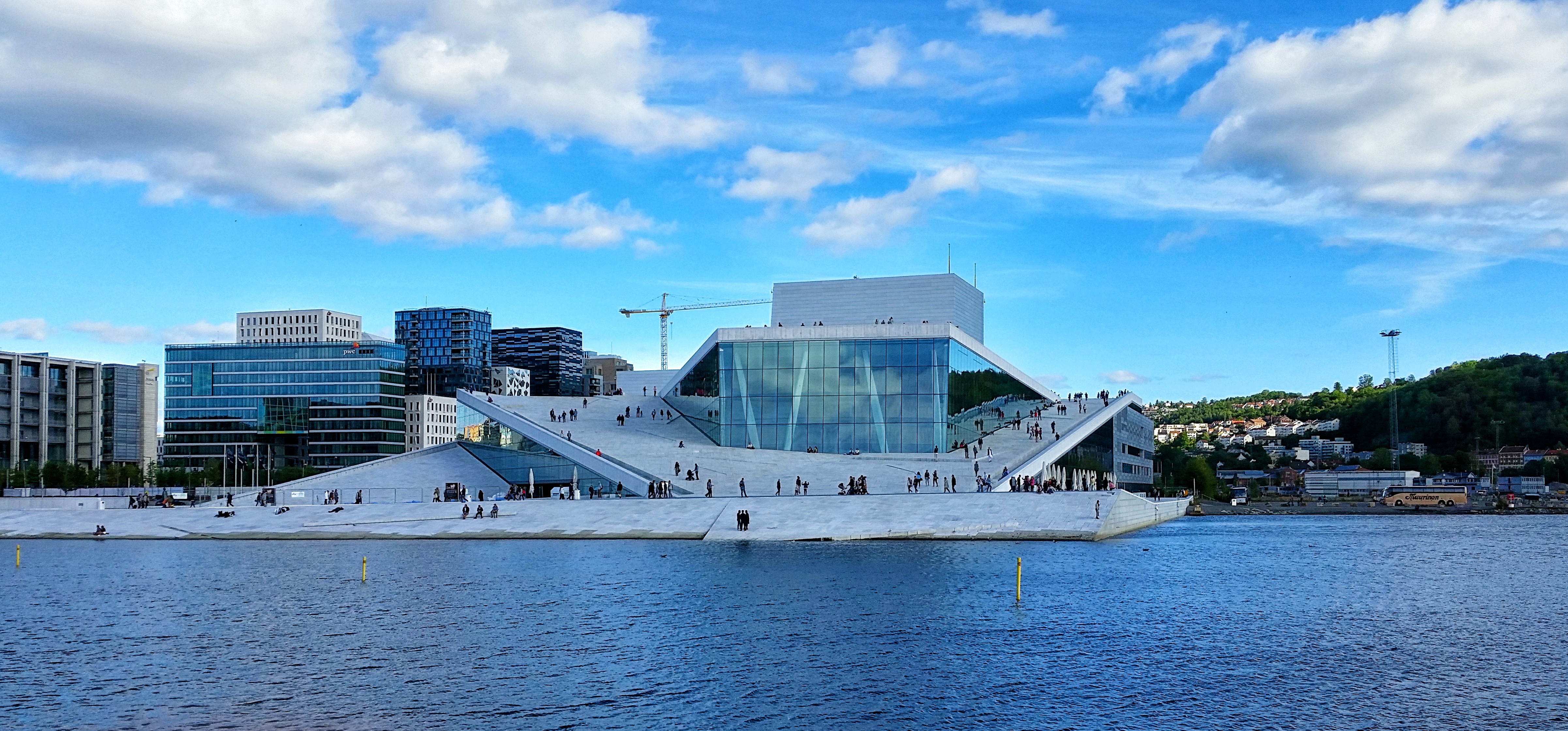 - Oslo Opera House – our final stop of the day was to the Oslo Opera House, though we didn’t take in a show. Instead, we walked to the top of the building to take in some great views of the city. As with everything else we did today, it was free! Though obviously going to a show would cost money. 🙂 It’s a fairly steep climb to the top (see pictures below) and you can choose to either walk up the incline or a set of stairs. Not sure if one is better than the other, but at least you get a choice.