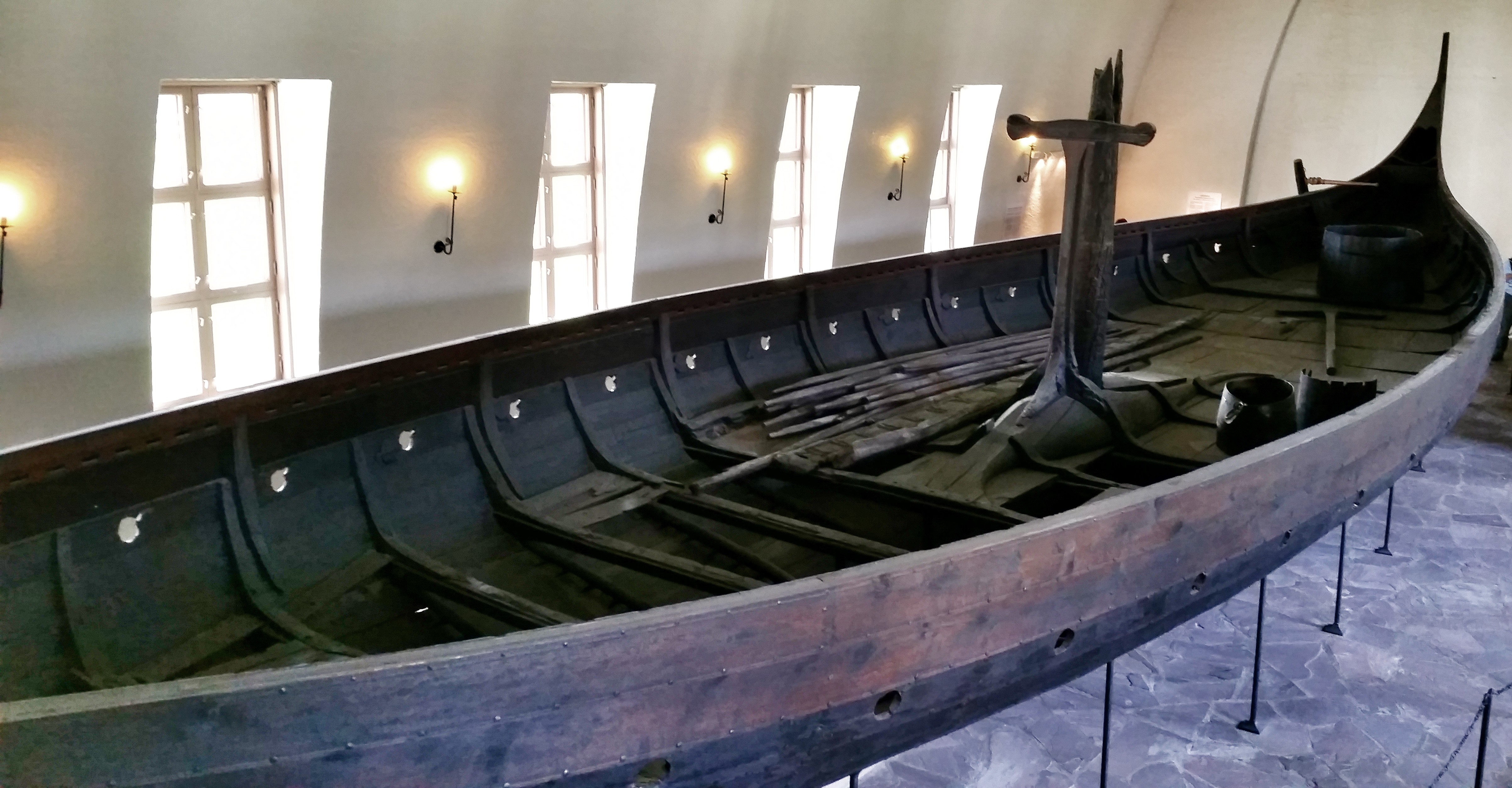 The Gokstad ship, where one man was found on a bed inside a burial chamber.