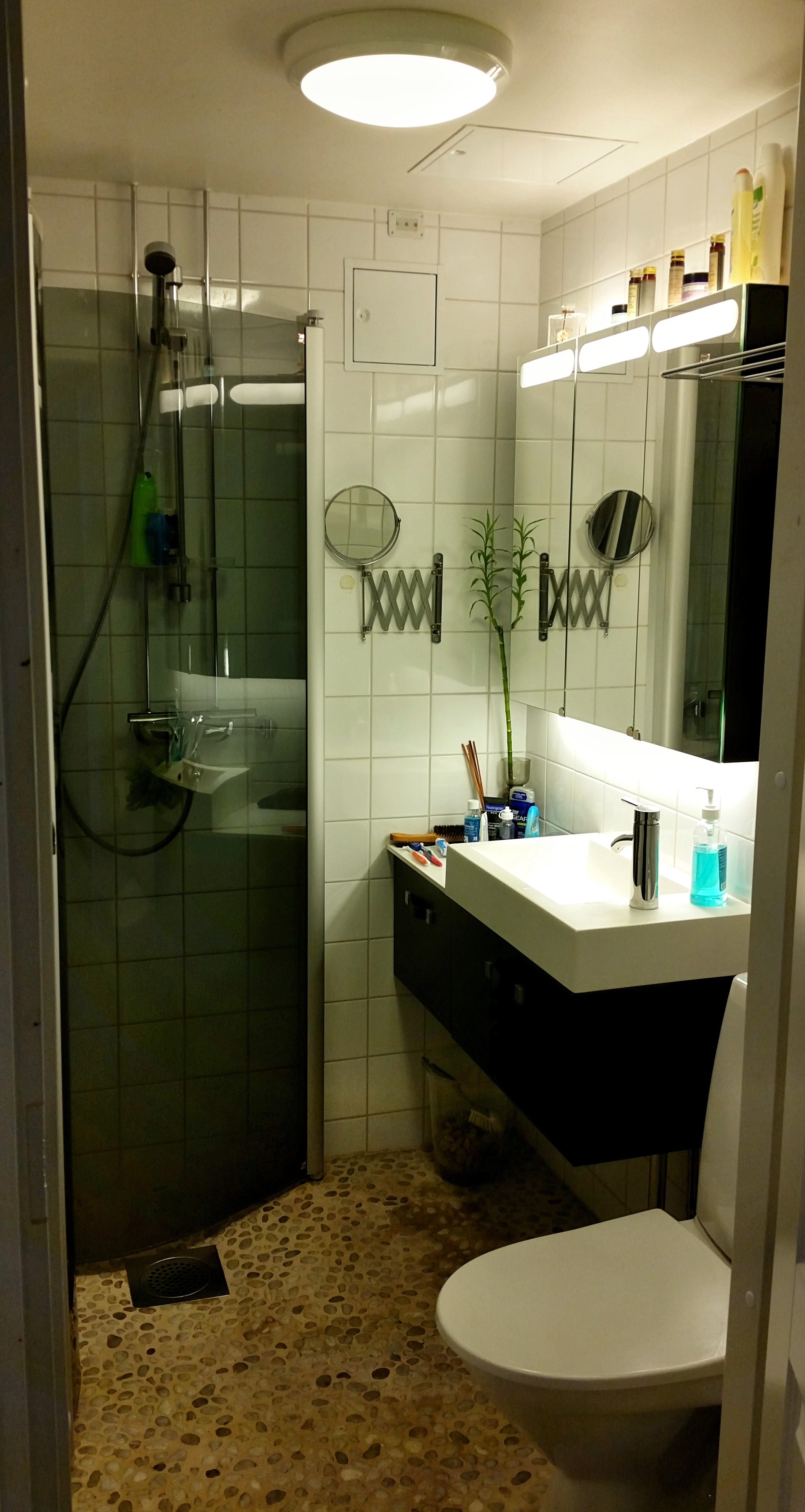The bathroom is decent, though it continues the trend of “the entire bathroom floor is part of the shower” that we’ve experienced in Scandinavia.