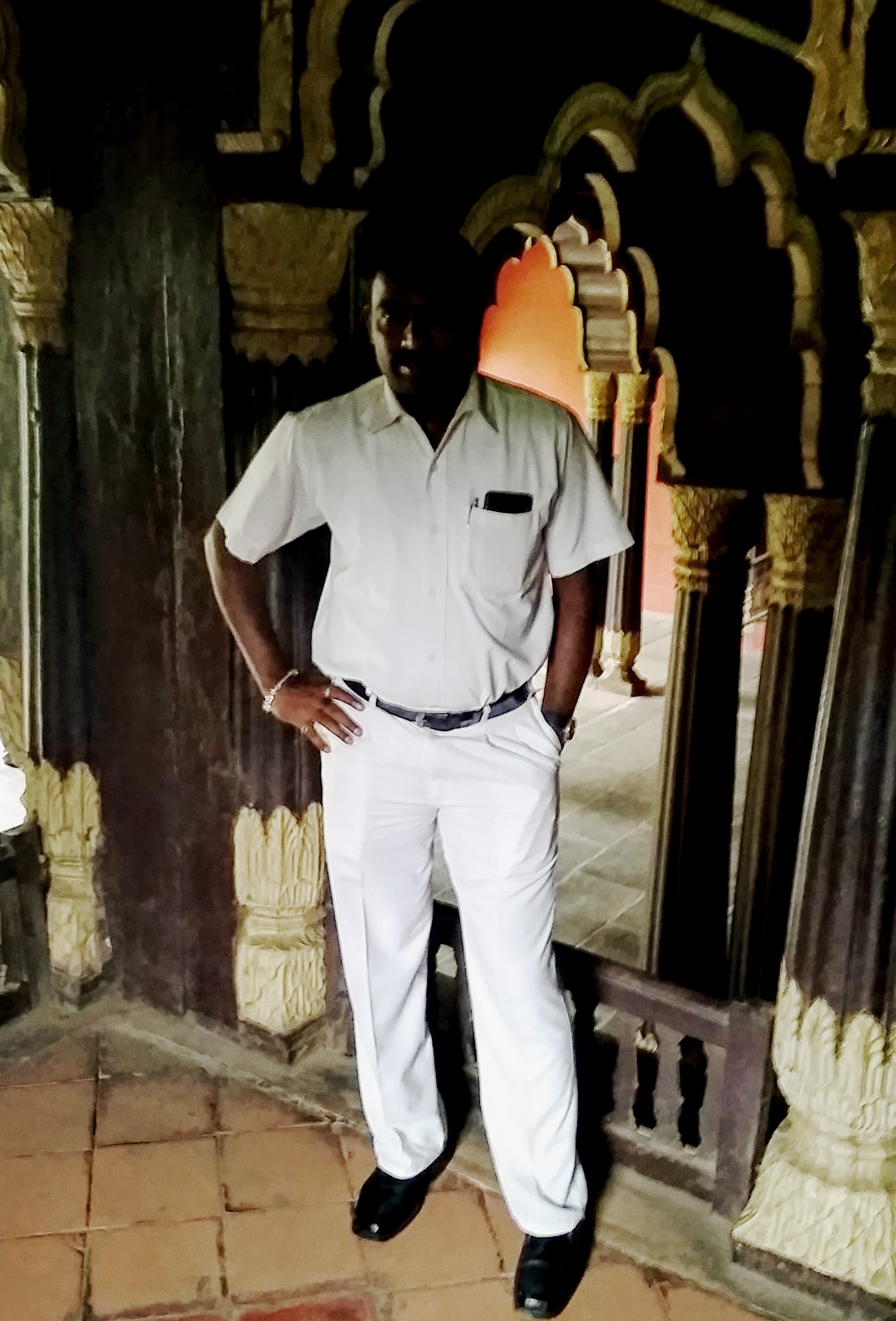 Not being much of a shopper in general, I was happy to move on to our next destination, the Tipu Sultan’s Summer Palace. I always love visiting buildings like this and it was great having Chandra with me to explain some of the history of the palace and the sultan himself. The entrance fee is ₹200 (~$3 USD, though it’s only ₹15 for Indians) and is definitely worth it. A section of the ground floor is used as a small museum about the sultan and includes information in English, so even without a guide, you’ll learn something. As soon as you get your ticket and walk through the gate, you’re likely to be approached by someone offering to be your guide, so feel free to accept that if you want to. Of course, it’s not free, but the man who came up to us only asked for ₹100, so it won’t break the bank. Whether you get a guide or not, pay the palace a visit, wander around, and take lots of photos (though be sure not to take photos in the museum part of the palace as they aren’t allowed there).