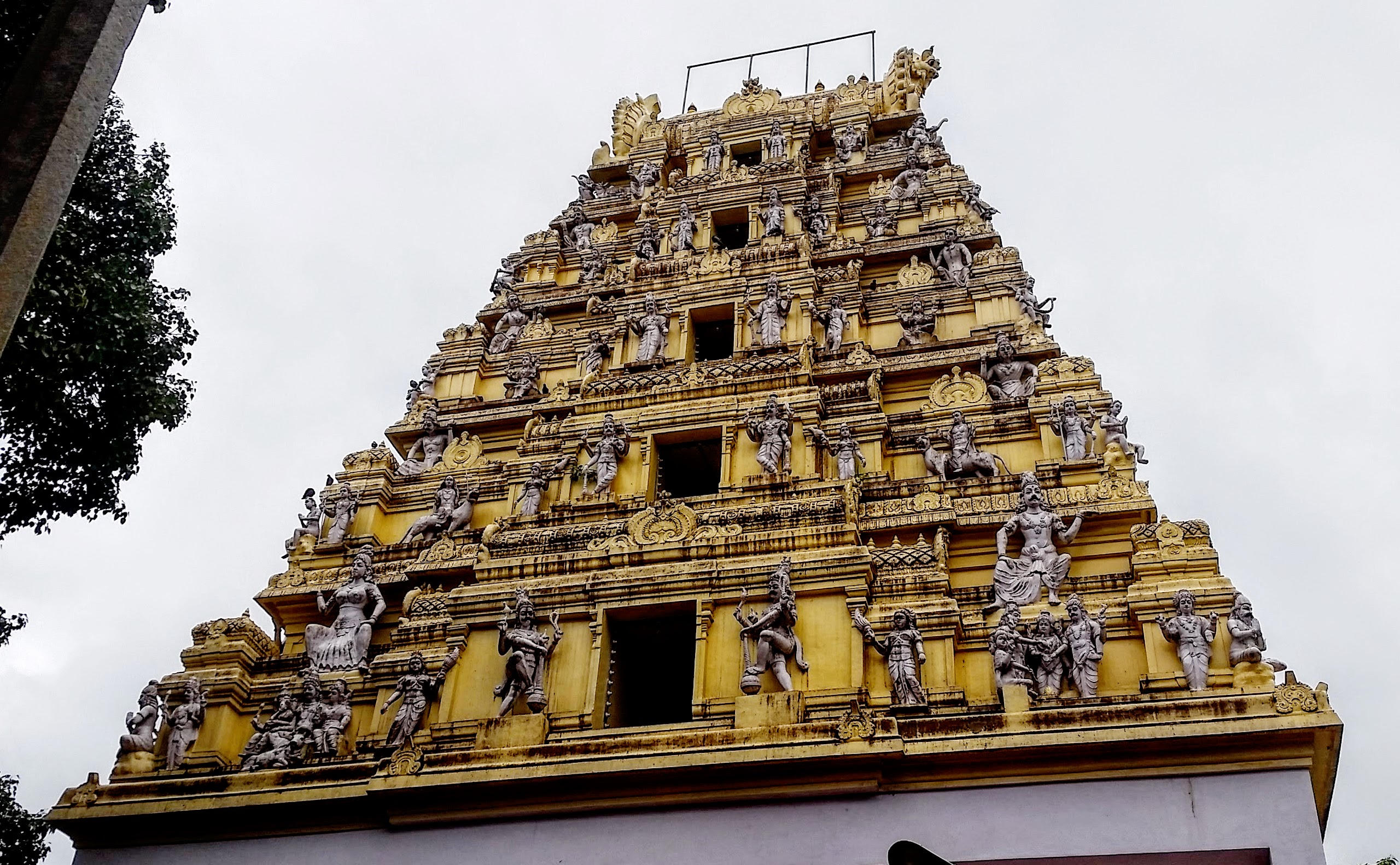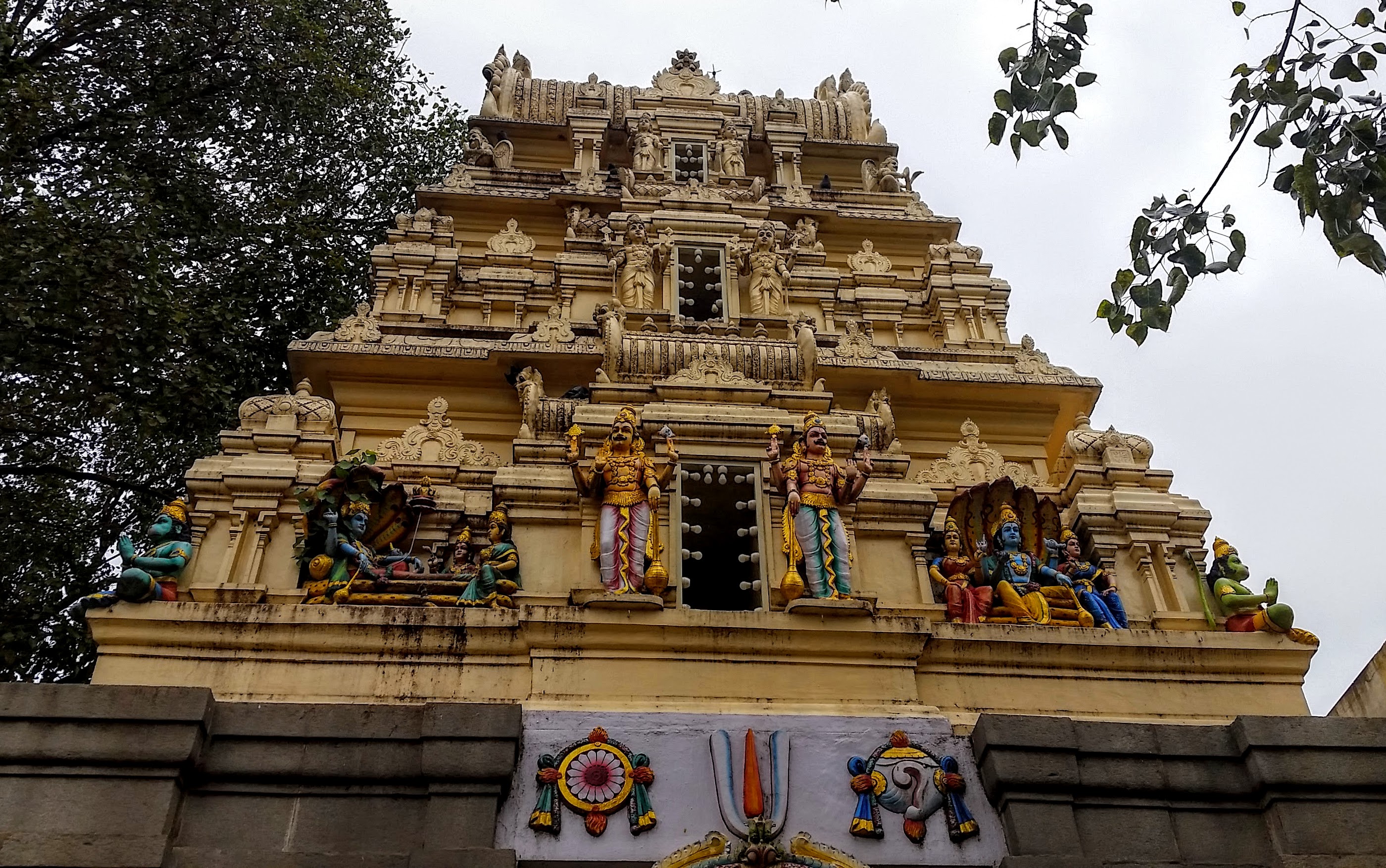 Next up was another interesting stop, the Bull Temple (Basavanagudi). I had never been to a Hindu temple before, but it was a cool experience. Having never been to one before, I was expecting it to be more like the many churches I’ve visited on my travels, but it was actually quite small. Most of the temple is dominated by the huge statue of the Nandi Bull, which is especially impressive because it’s said the bull is carved from one piece of stone. Everyone must remove their shoes and socks before entering the temple, so don’t forget to do that! At this temple (and, I assume, at others), you’ll see where everyone is taking their shoes off, so just follow their lead. Upon entering, we were given a blessing on our foreheads and then walked around the Nandi Bull while Chandra provided some history of the temple. I know very little about Hinduism, so it was fascinating to learn about it. Again, I highly recommend having a local guide with you when visiting places like this as you’ll learn so much more about the culture. There’s another temple, Dodda Ganesha Temple, just down the hill from the Bull Temple, but it was just closing when we walked by it, so we were only able to peek in.