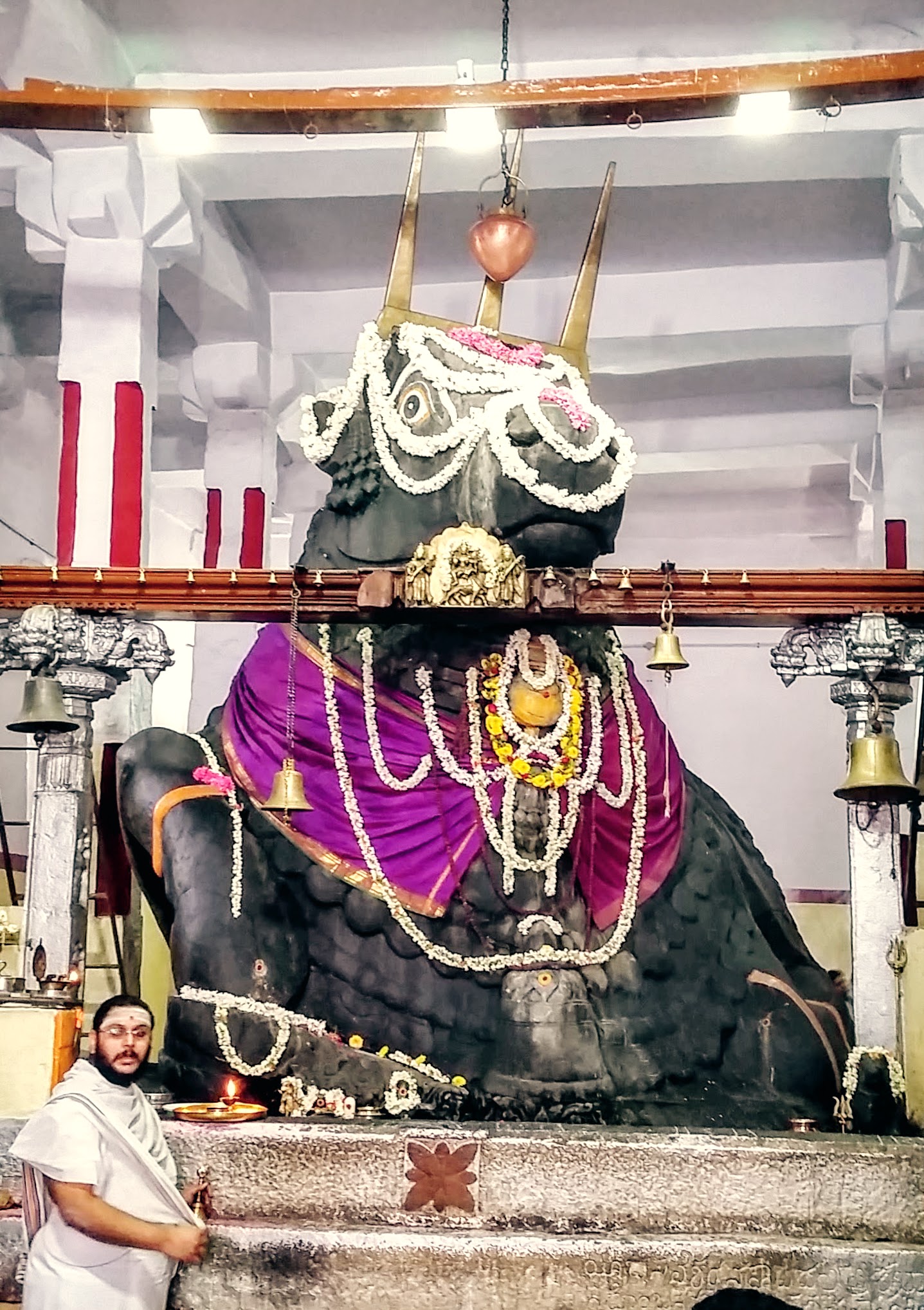 The huge Nandi Bull statue in the temple.