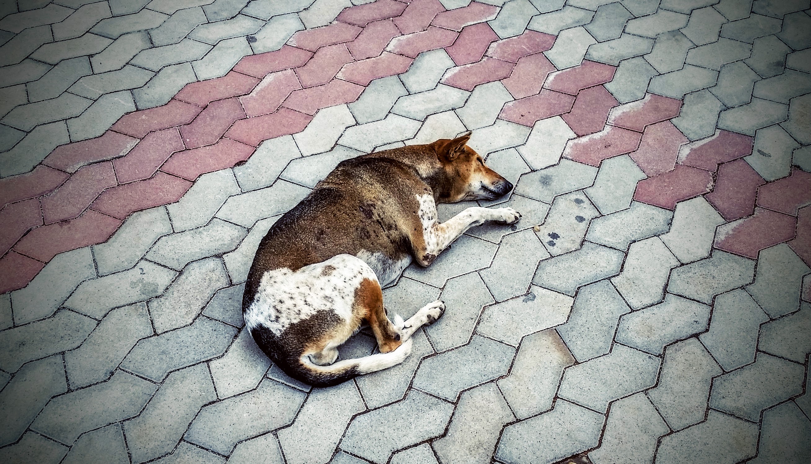 An example of a street dog. There were many of them just lying around, sleeping on the ground.