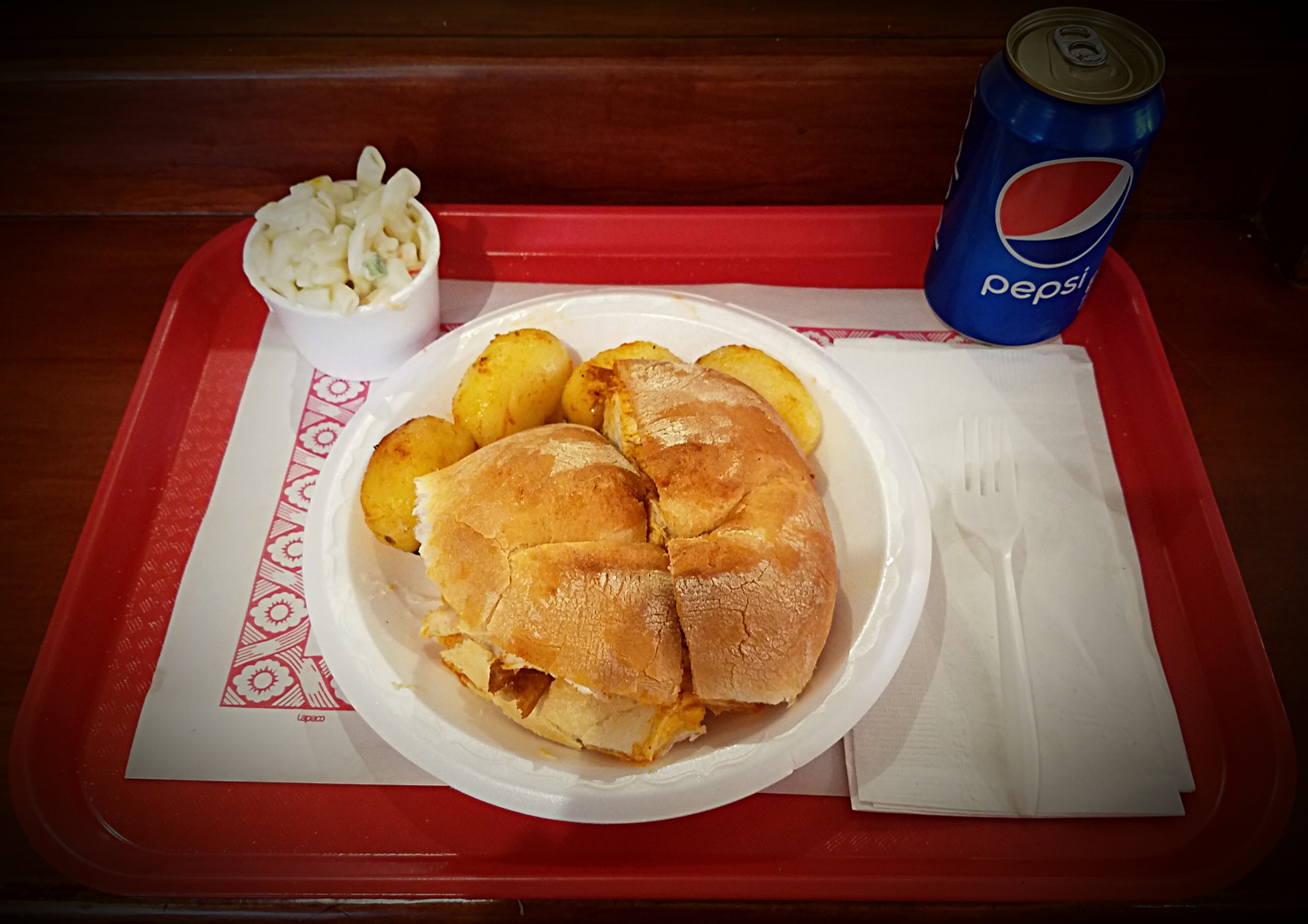 In addition to the chicken in a bun, we also got potatoes with a kind of BBQ seasoning and a small cup of salad.