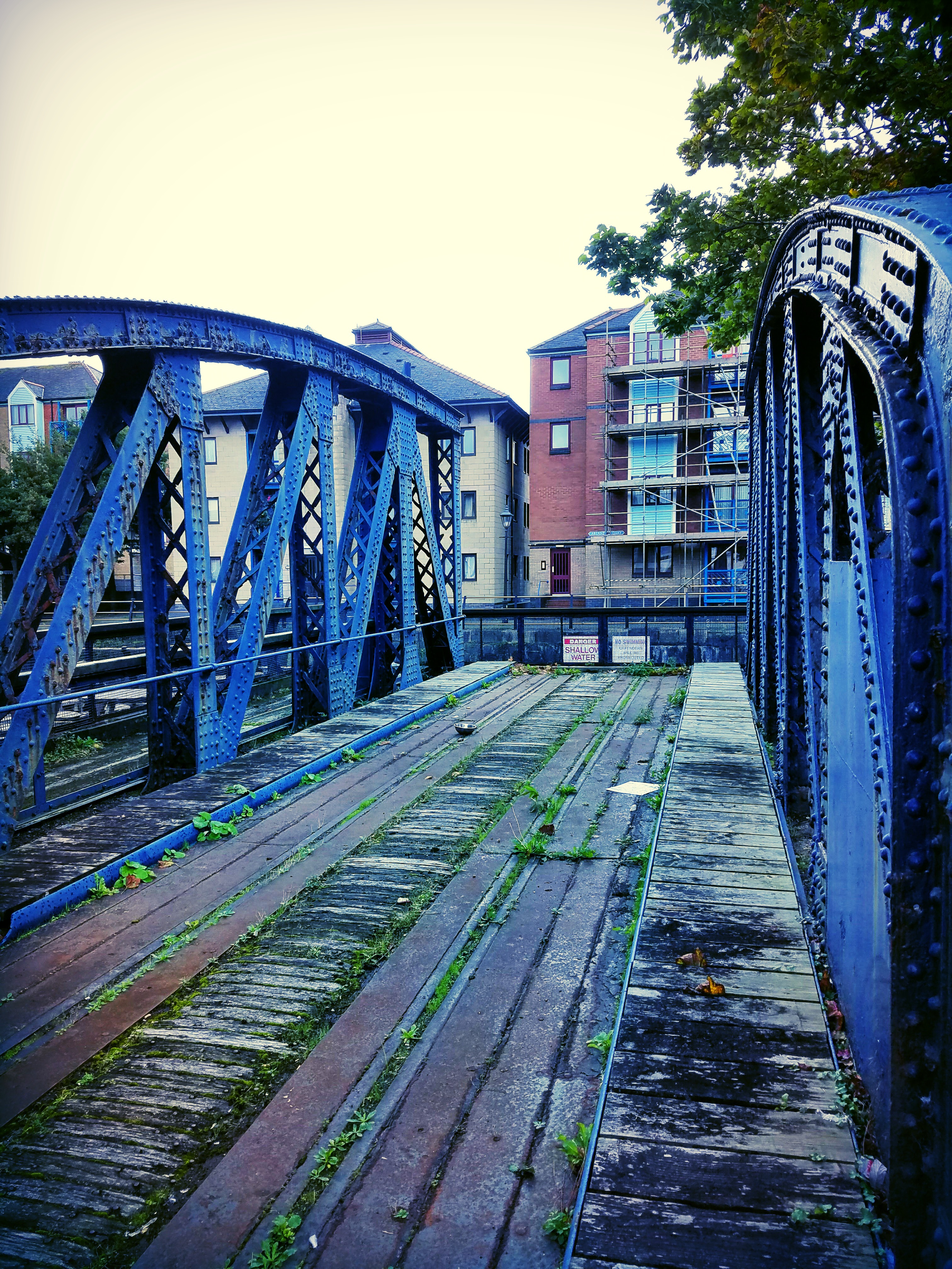 I assume this rail bridge used to cross over the water at the marina and that just this small piece of it was preserved.