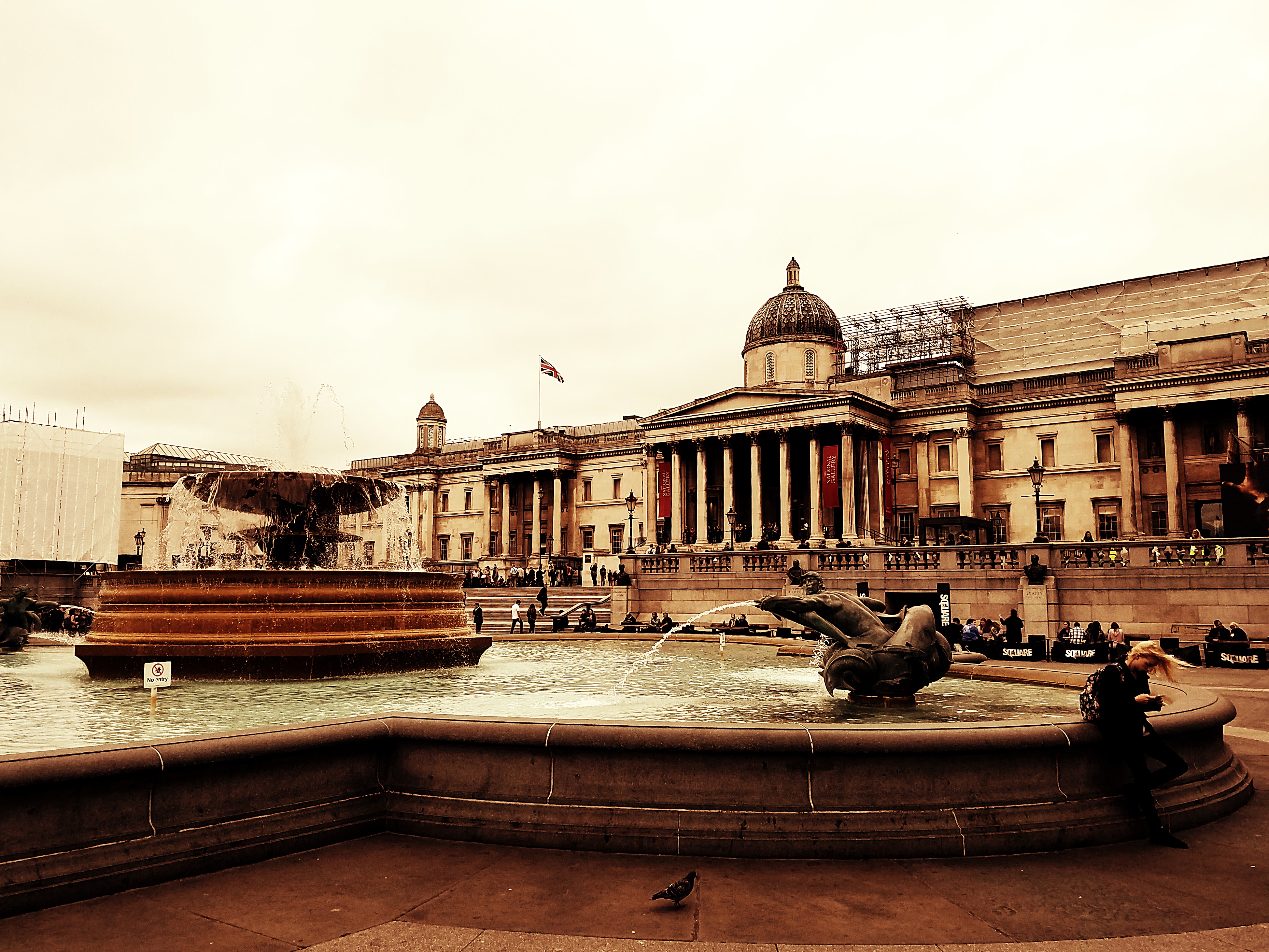 Lord Nelson sitting atop his column as usual.