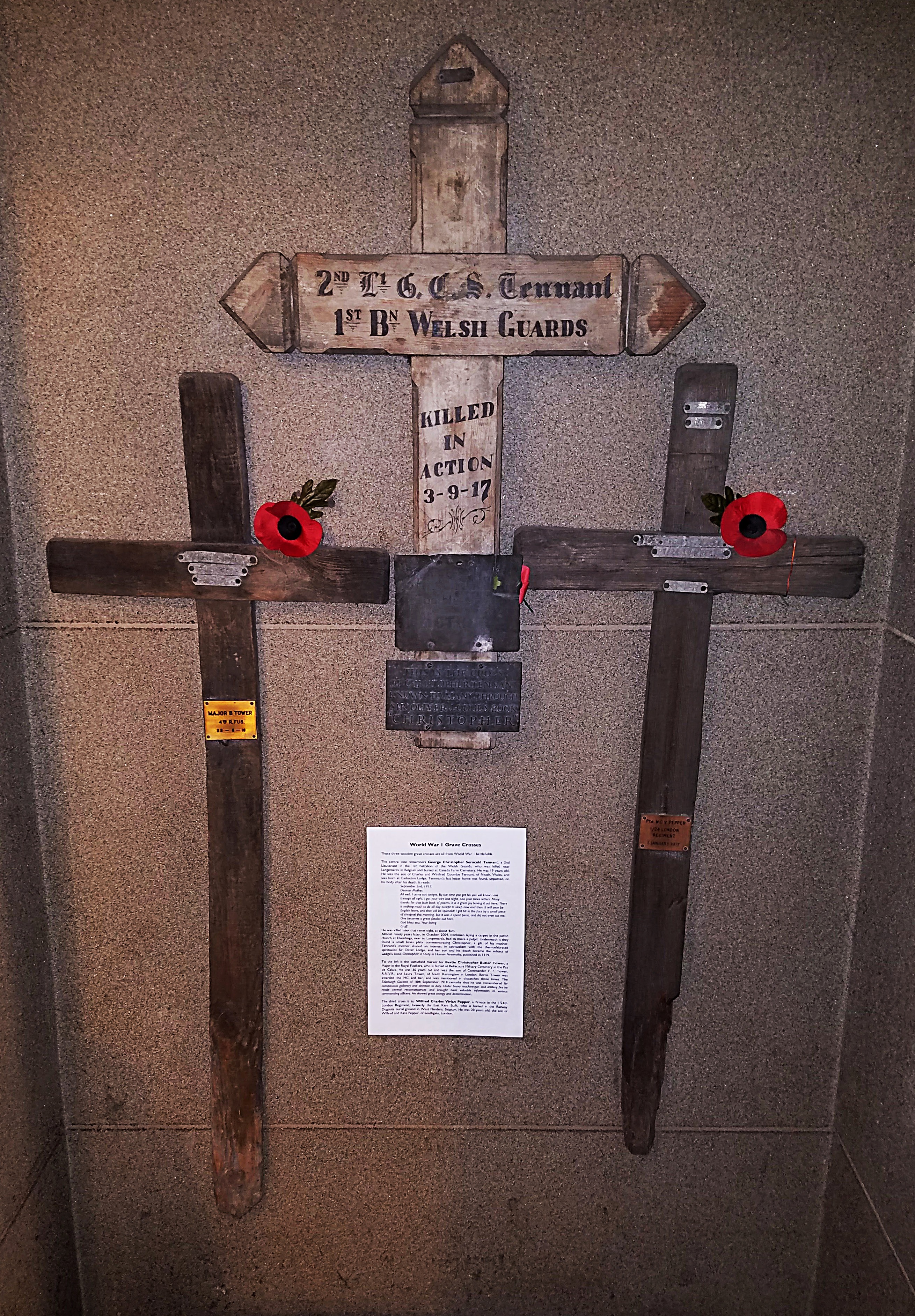 These wooden grave crosses are from World War 1 battlefields.