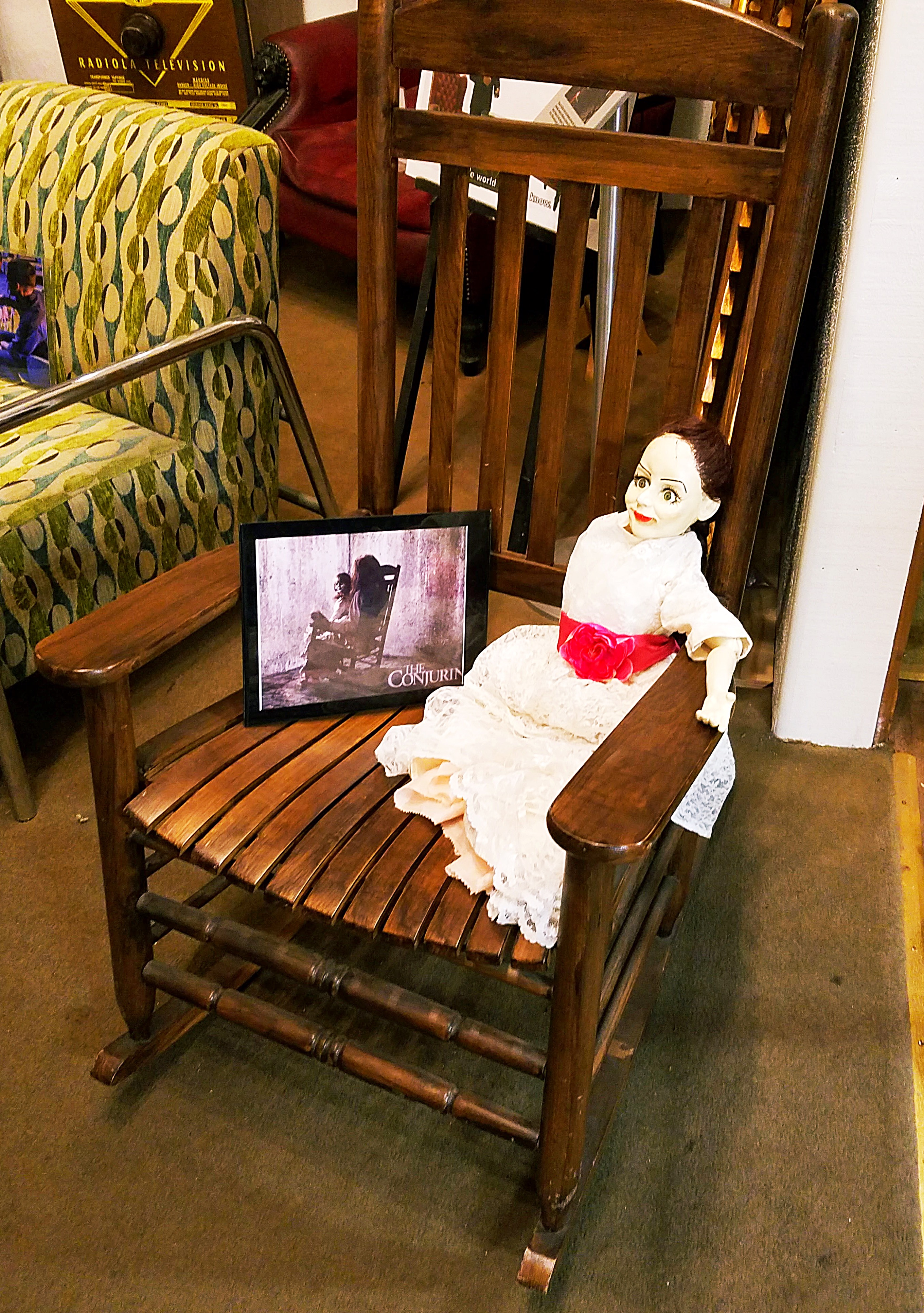 We were told this is the Annabelle doll, but they must put a blonde wig on it when it’s used in the Annabelle/Conjuring movies.