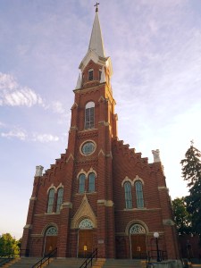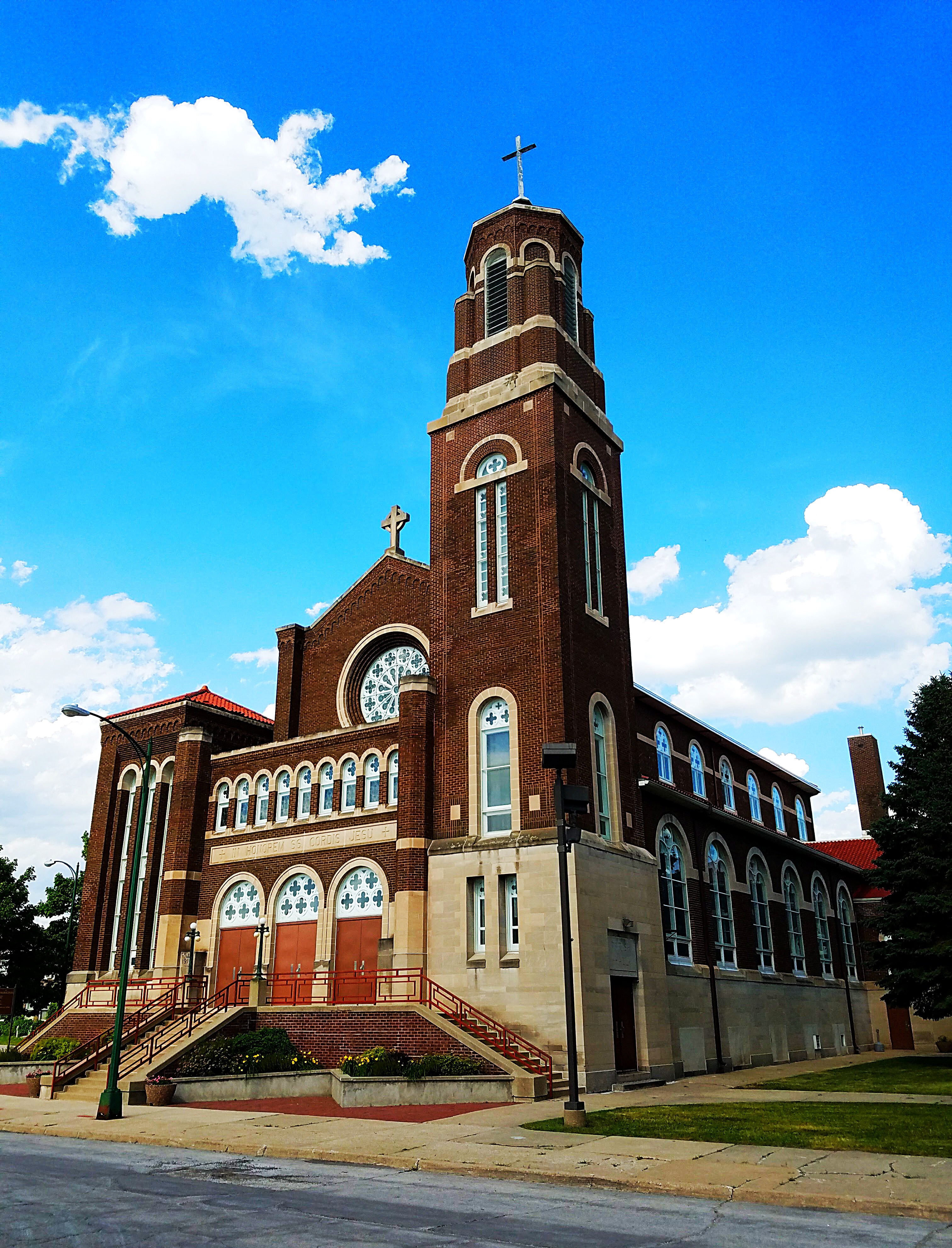 The next morning, Friday, I planned to get on the road to Omaha (about three hours away), but I had one thing to do first – take a tour of what used to be Holy Rosary. Although the church and school closed years ago, it’s found new life as Community Christian School, so I had contacted them via their website a couple of weeks before my trip and Jean, their business manager, got back to me very quickly saying she would be happy to take me on a tour. Since school was already out, I wasn’t even sure anyone would be around to do that, but it turned out a couple of people were still there a few hours a day, so I was delighted to have the chance to walk those halls once again. The building is three levels, with the school on the lowest, the big gym/cafeteria/kitchen on the ground level, and the old church (now chapel) on the top. Surprisingly, the building looks mostly the same inside and out (especially outside), though a number of changes were made to turn the former church into a chapel (as well as some additional classroom space). In addition to going to school and church there, my family and I were also there most every Saturday night working/playing bingo in the gym. Oh, those were fun times! It’s crazy to think about people from the neighborhood playing bingo, smoking (hey, people smoked everywhere then!), and enjoying concessions every Saturday night, but that’s the way it was. The bingo boards are still there today and, according to Jean, so is all the equipment to run them. That gym was also home to Holy Rosary’s annual spaghetti dinners, championed for decades by the Italian women who attended the church. Apparently the dinner still happens today, though I somehow think it’s not as good as it once was. No matter though – the memories of it were more than enough for me on this tour!