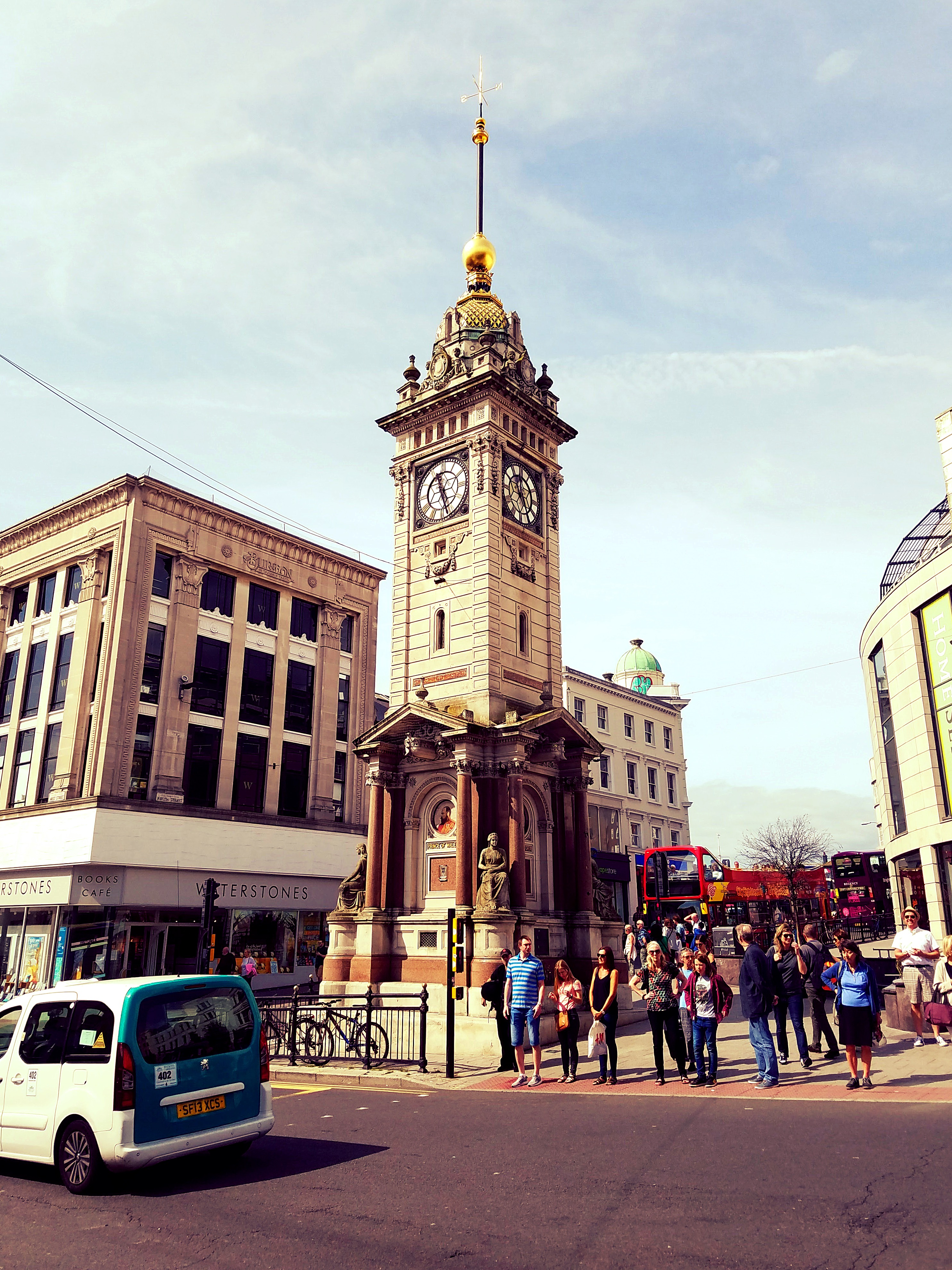 After an hour(ish)-long train ride, we arrived in Brighton! My friend Matt lives in Hove (part of Brighton), so he caught a bus over to us and we met him by the station. I haven’t seen him since November last year (at Chicago TARDIS), so it was great to see him again! He had previously met Scott on our first trip over here together, so I’m glad they got to reconnect as well. We didn’t have any definite plans for the day – we just wanted to hang out with Matt and see some of what Brighton had to offer. Our first order of the day was lunch (hey, our train arrived after 11, so it was the right time of day for it!) and we landed on going to La Choza (Matt’s recommendation), but they weren’t quite open yet, so we spent some time wandering around the North Laine, getting a peek at the seafront, and seeing some other Brighton sites before heading back to La Choza a little after noon. Our lunch was great! Between the three of us, we had a quesadilla, burrito, and tostadas and we also shared some queso fundido with chorizo, along with a couple of adult beverages, and everything was delicious! I had never even walked by this place on my previous trips to Brighton, but it’s one I would love to revisit in the future. I definitely recommend checking it out the next time you’re in Brighton!