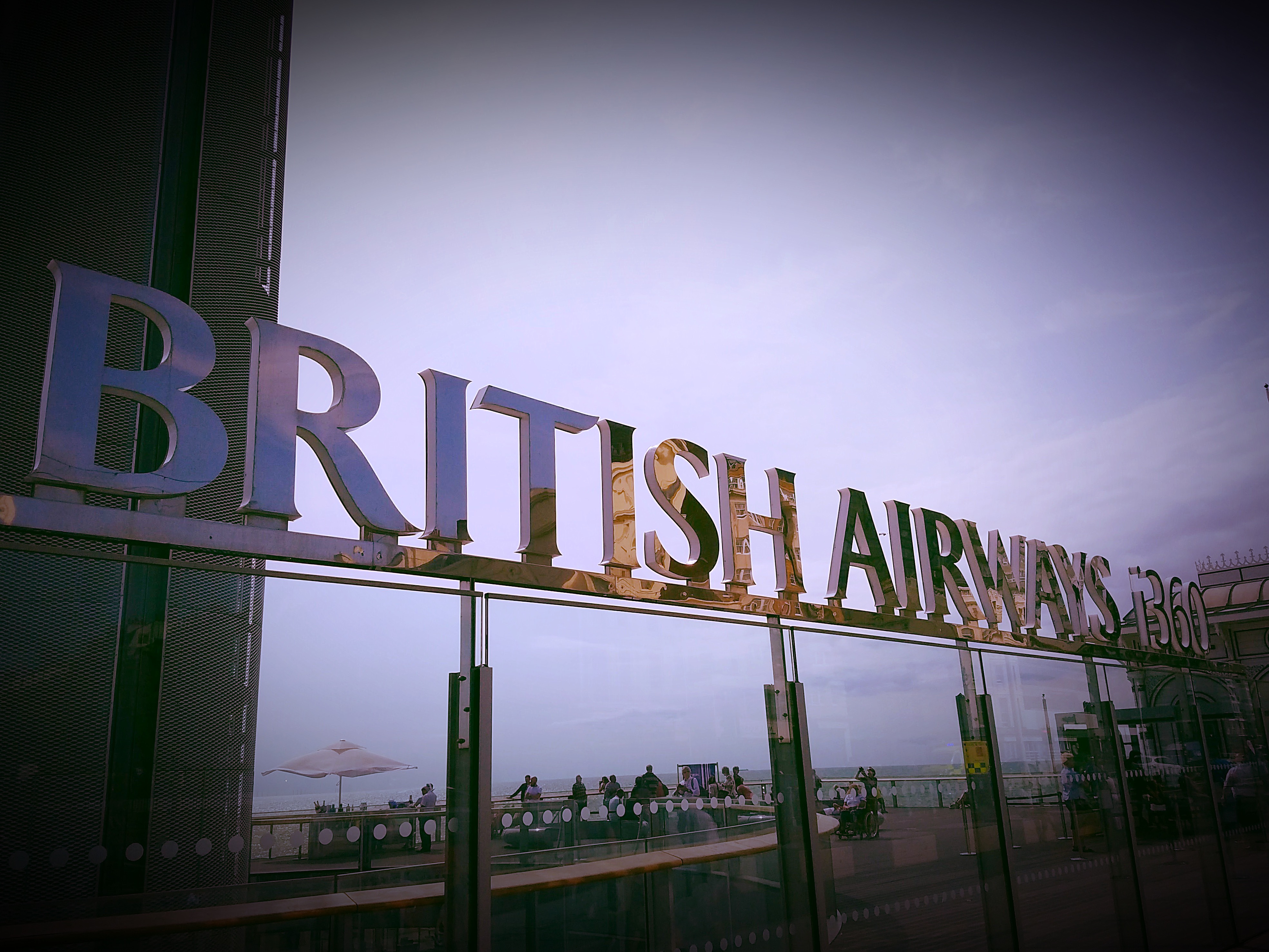 With our bellies full of delicious Mexican food, we set off to see more of Brighton, taking in sights like the Royal Pavillion, which was built starting in the late 1700s for King George IV and is a really incredible-looking building. I hadn’t been inside it since my first UK visit waaaaay back in 2003 and I thought we would for sure end up going through it yesterday, but we never did. That doesn’t mean you shouldn’t though! It is a great place to visit when in Brighton, so check it out! Or do we what we did and just have a nice walk around the town. 🙂 Instead of the Royal Pavillion, we spent some time wandering down the seafront, landing eventually at the British Airways i360. You may remember me mentioning the i360 in last year’s Brighton post (it had just recently opened then), but I didn’t go on it then, so we all decided to give it a try this time (Matt hadn’t been on it either – too touristy for a local!). Although it’s obviously a bit of a tourist trap, it was pretty fun and the sunny, clear weather gave us great views over Brighton and the surrounding South Downs. At £16/$20 for adults (cheaper for children, over-60s, and locals), it’s not the cheapest way to spend a half-hour, but on a sunny day, I would recommend giving it a try. Sadly, the glass inside the i360 is particularly reflective, which makes taking photos of the amazing views pretty difficult (as you’ll see below), but I guess that just means we had to live in the moment a bit more!