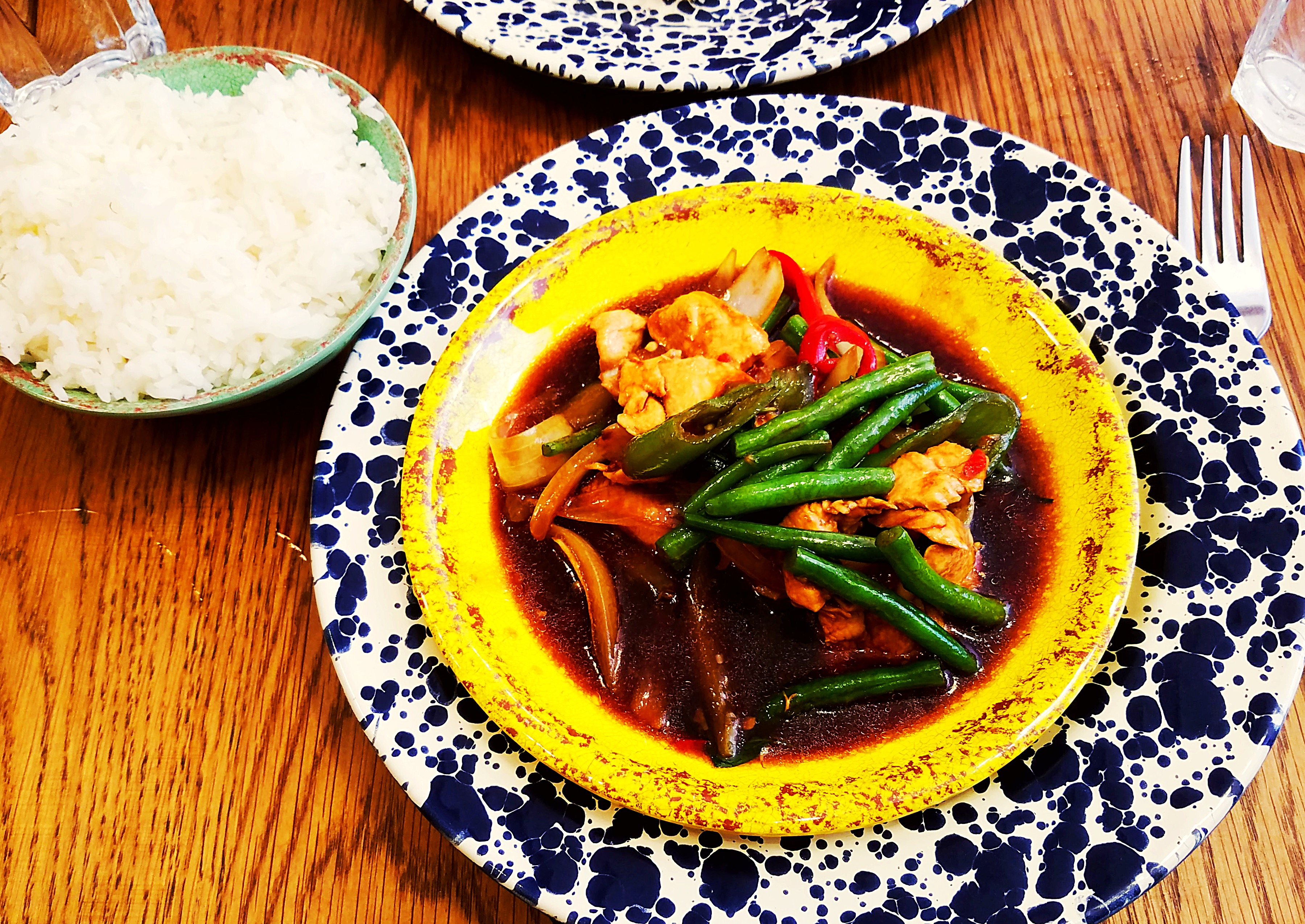 Chili and basil stir fry at Rosa’s in Soho.