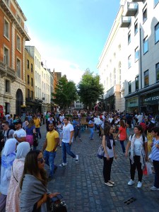 A glimpse at the crowds of people in Covent Garden.