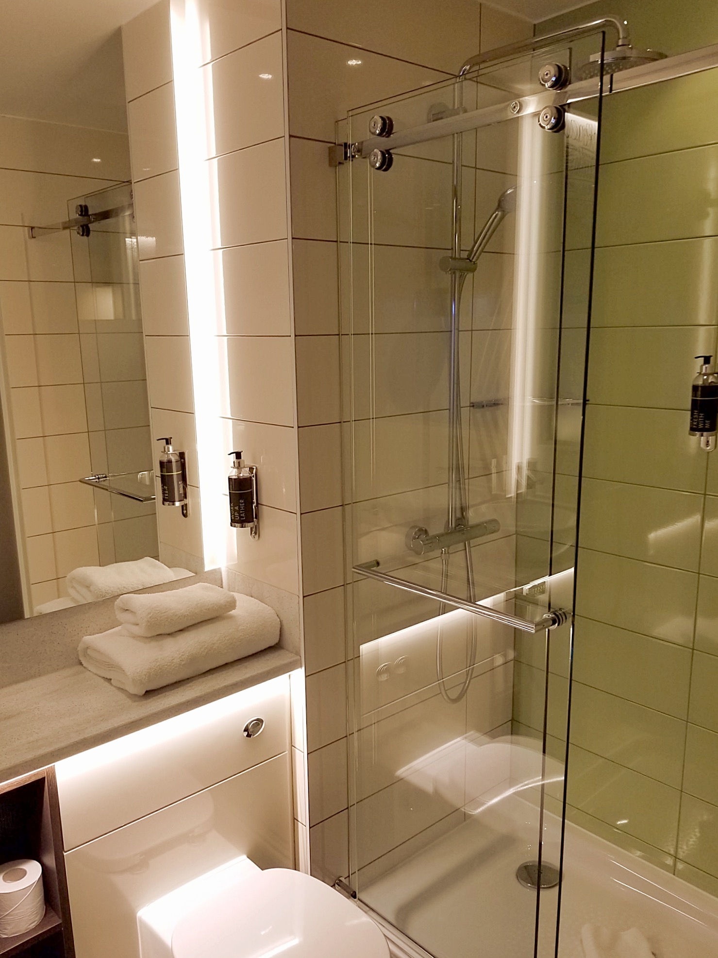 A small, but very functional bathroom. As with other Premier Inn hotels I’ve stayed in, the water pressure is great!