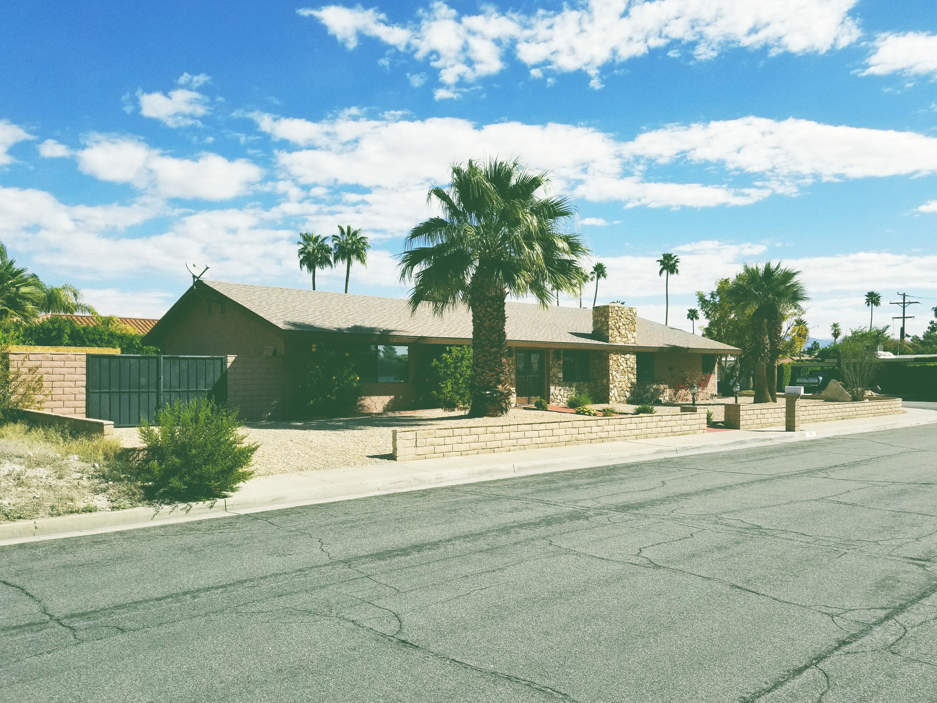 Although some houses in Palm Springs have grass, it seems most have some variation of gravel or sand, like this one.