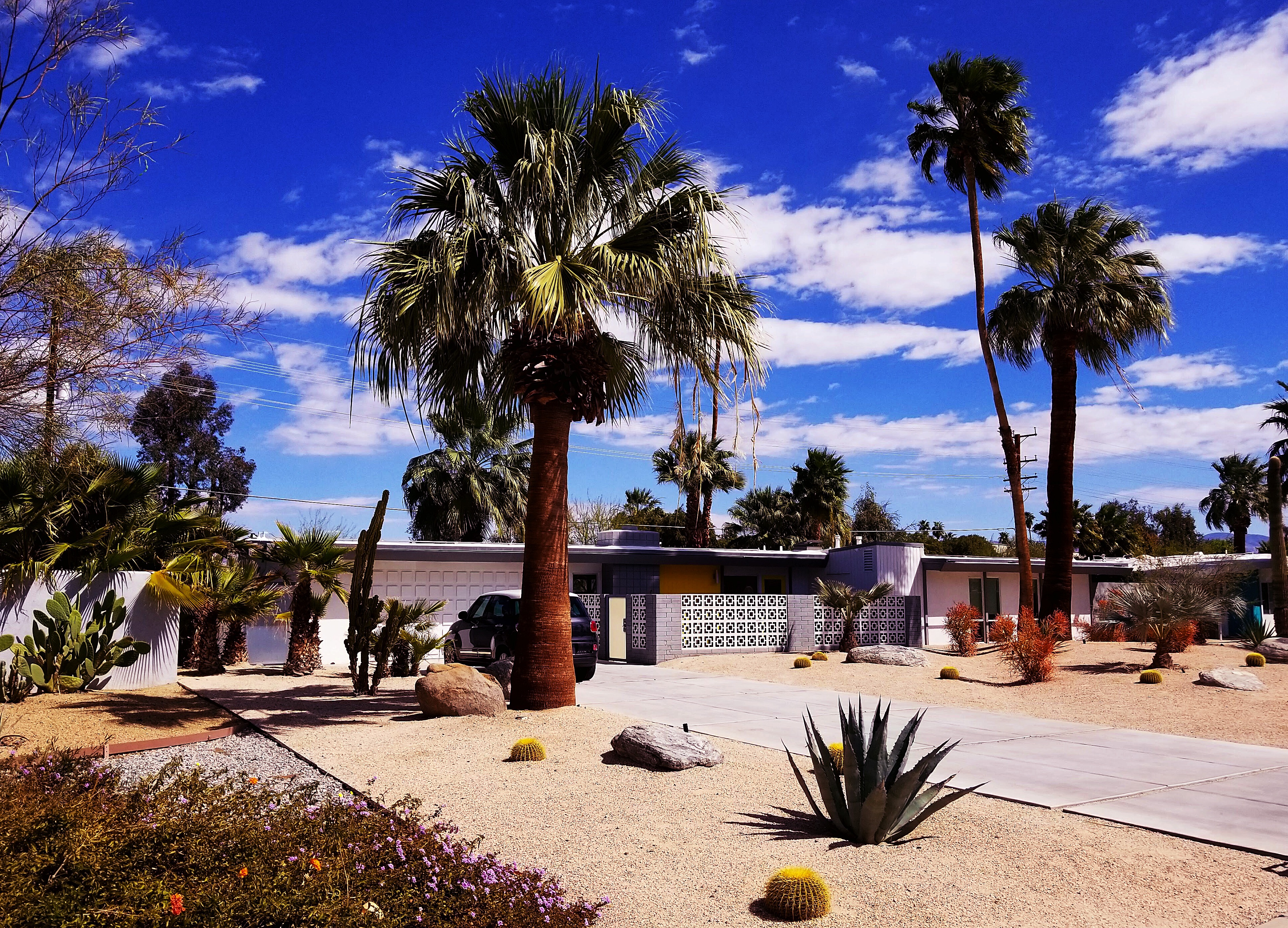 What a great day we had! As you heard about in my last post, today is the only day we had firm plans to do something that didn’t involve laying in the sun, swimming, or eating. That planned thing was a trip on the Palm Springs Aerial Tramway, which we did do, but that’s not all! We also did a little walking tour of a few different neighborhoods that were recommended to us by a local realtor. And of course, we also squeezed in some sun and pool time.