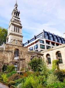 Christchurch Greyfriars Church Garden, which stands on the site of two churches – one that was destroyed by the Great Fire of 1666 and another (designed by Sir Christopher Wren) that was destroyed by bombs in World War II.