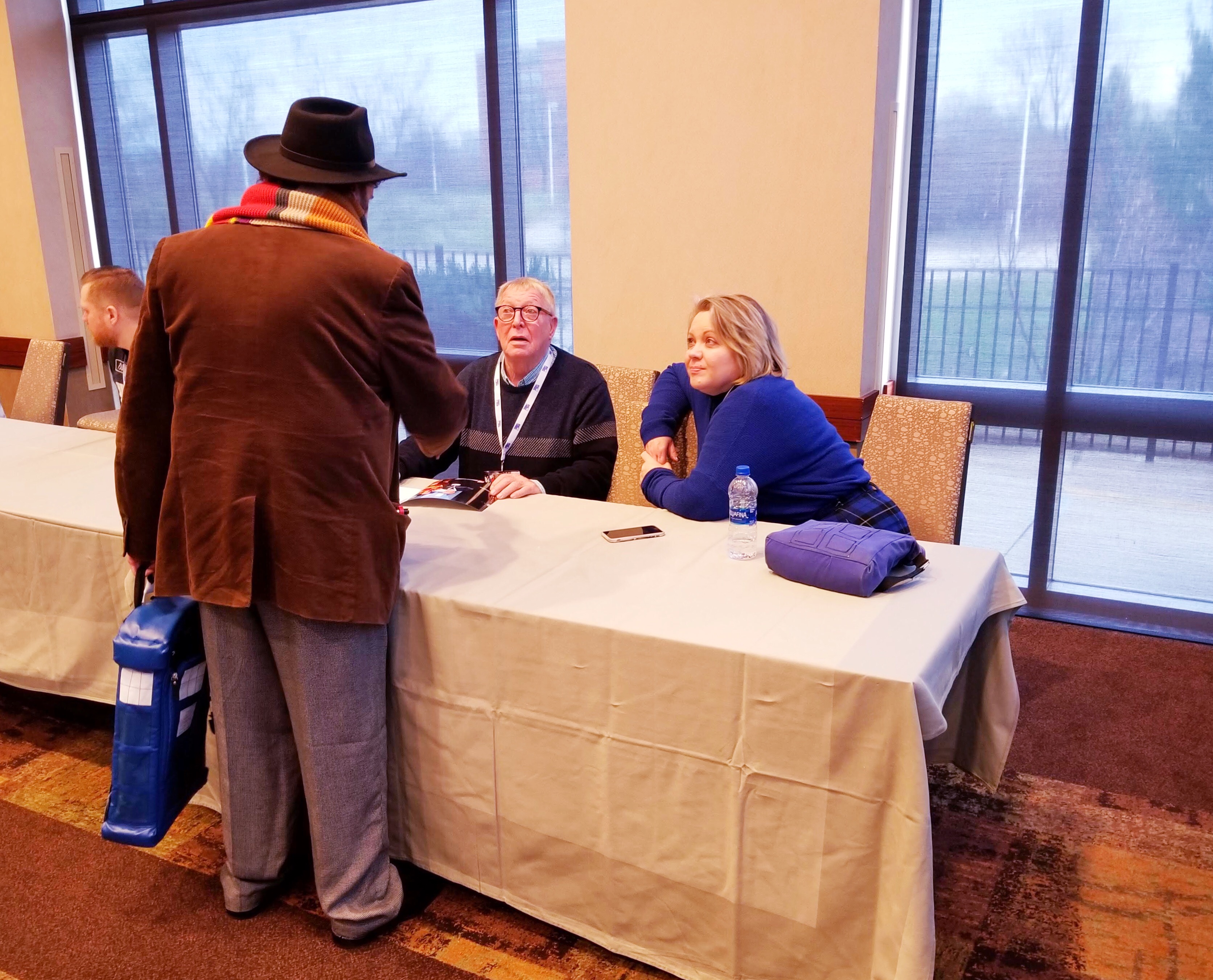 My friend Felicity, who also volunteered as a guest liaison, sitting with her guest (Graeme Harper) during an autograph session.