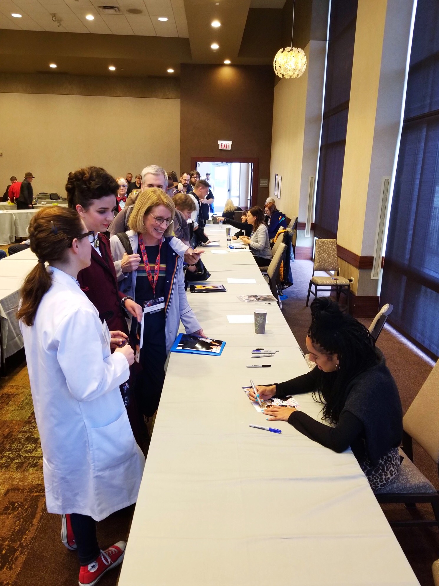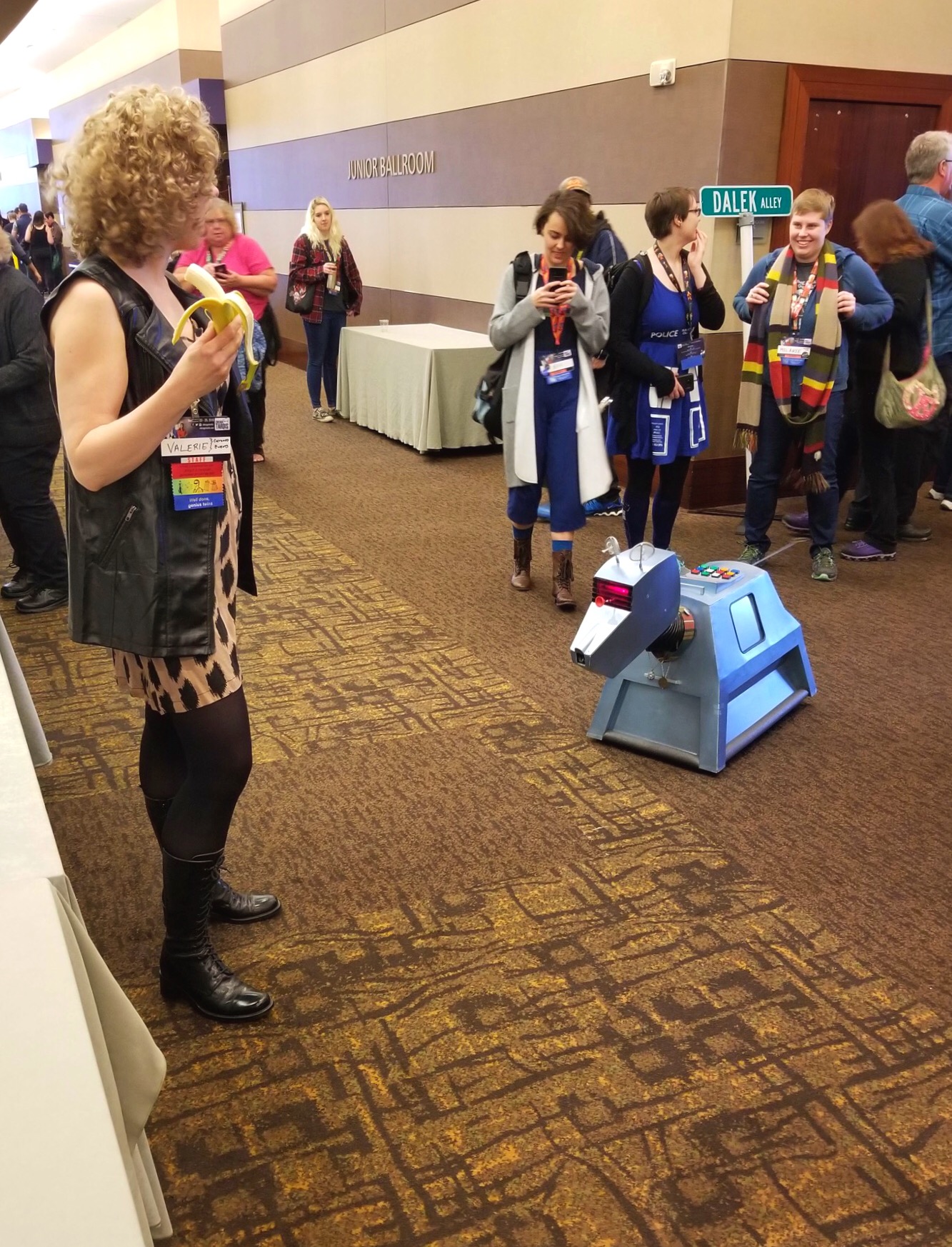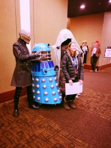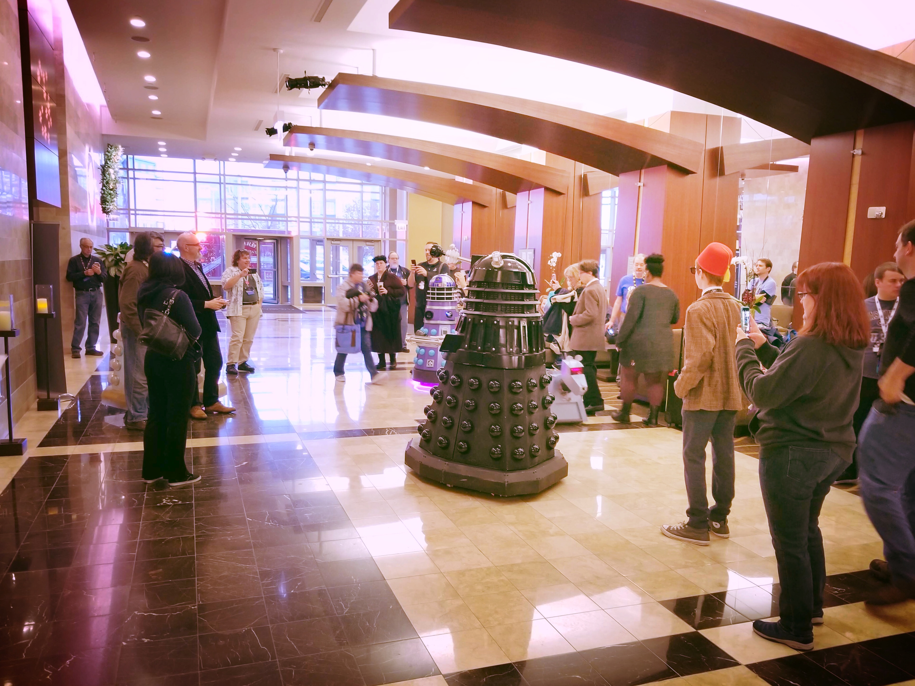 Back to the convention! As usual, there were a number of guests from the worlds of Doctor Who there and, also as usual, I volunteered my time as a guest liaison, which involves working with a guest (sometimes a couple of them) to make sure they get where they need to be, shield them from the occasional over-zealous fan, and generally make sure they have what they need. This time, I worked with Pearl Mackie, who played companion Bill Potts in Series 10 of Doctor Who. She was a delight! Very personable, great with fans, and willing to make sure everyone who wanted to see her for an autograph or photograph didn’t get turned away (as an example, she stayed nearly two hours late during one of her autograph sessions!). Although volunteering means I have to work my friend time and other convention activities that I want to do around my volunteer schedule, I enjoy it and it’s almost always been worth the time commitment! It’s not usually too big of a commitment anyway and my evenings are always (mostly) free of volunteering, so I still get to have lots of fun. That was true this year as well, where I was able to attend some panels hosted by friends, enjoy chatting in the evenings, and generally have a good time. The convention did feel somewhat quieter this year, but as I’ve said before, most of what I get from conventions is the time I spend hanging out with friends and I had a great group of friends there, so we had a lot of fun!