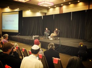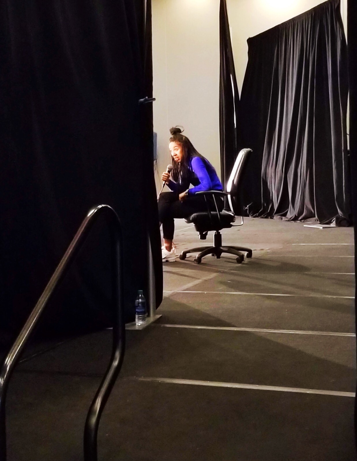 Sneaking a photo of Pearl from backstage while she was being interviewed by several young fans.