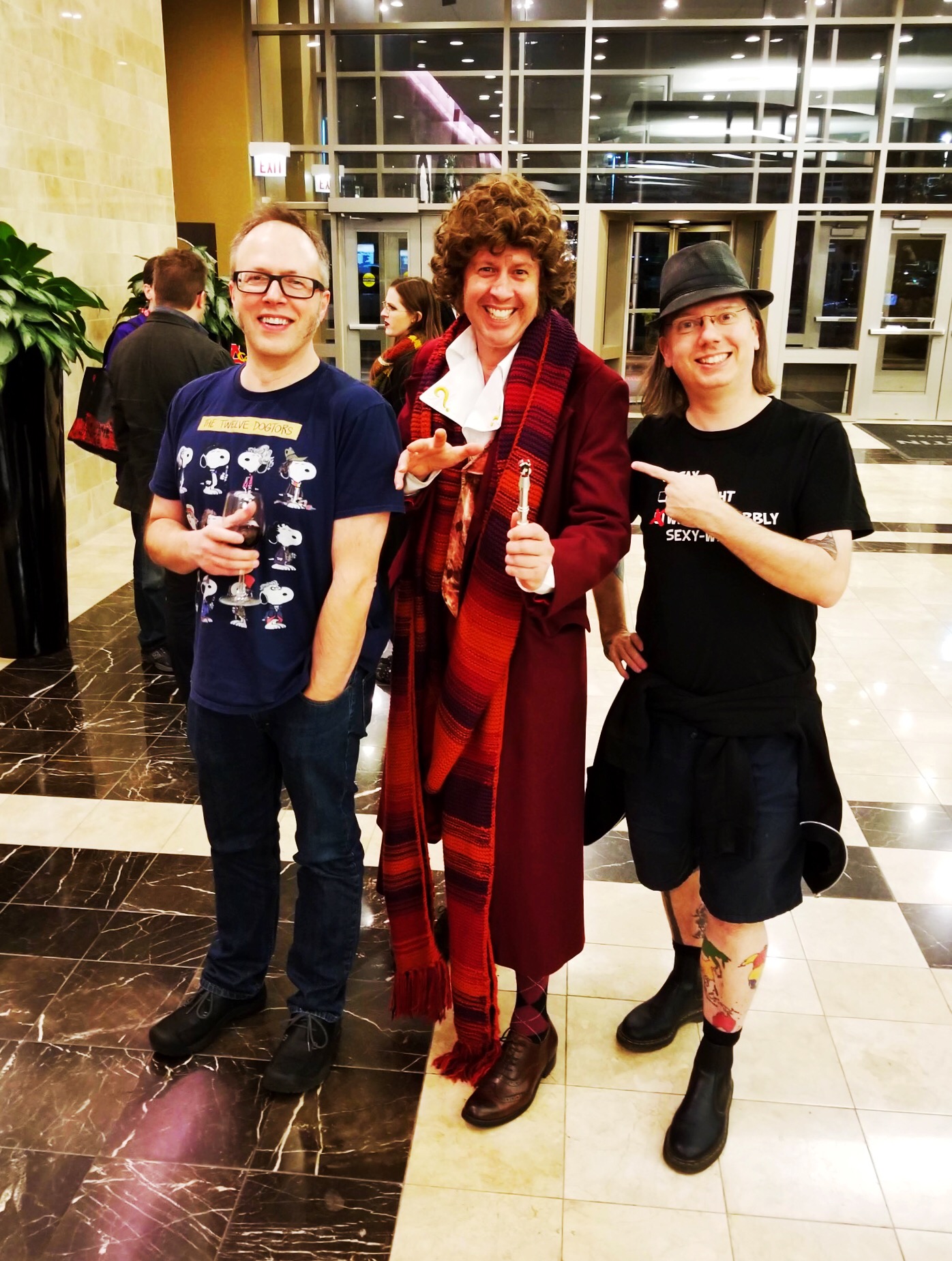 My friends Bill and Robert with a Fourth Doctor cosplayer.