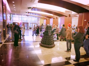 A collection of daleks in the lobby. This is where I saw that transparent dalek shimmying away!