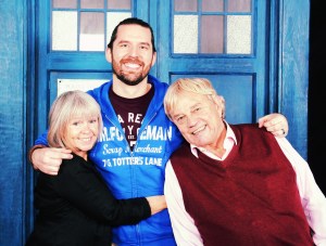 Behind the scenes of a photo shoot with guests Frazer Hines and Wendy Padbury.