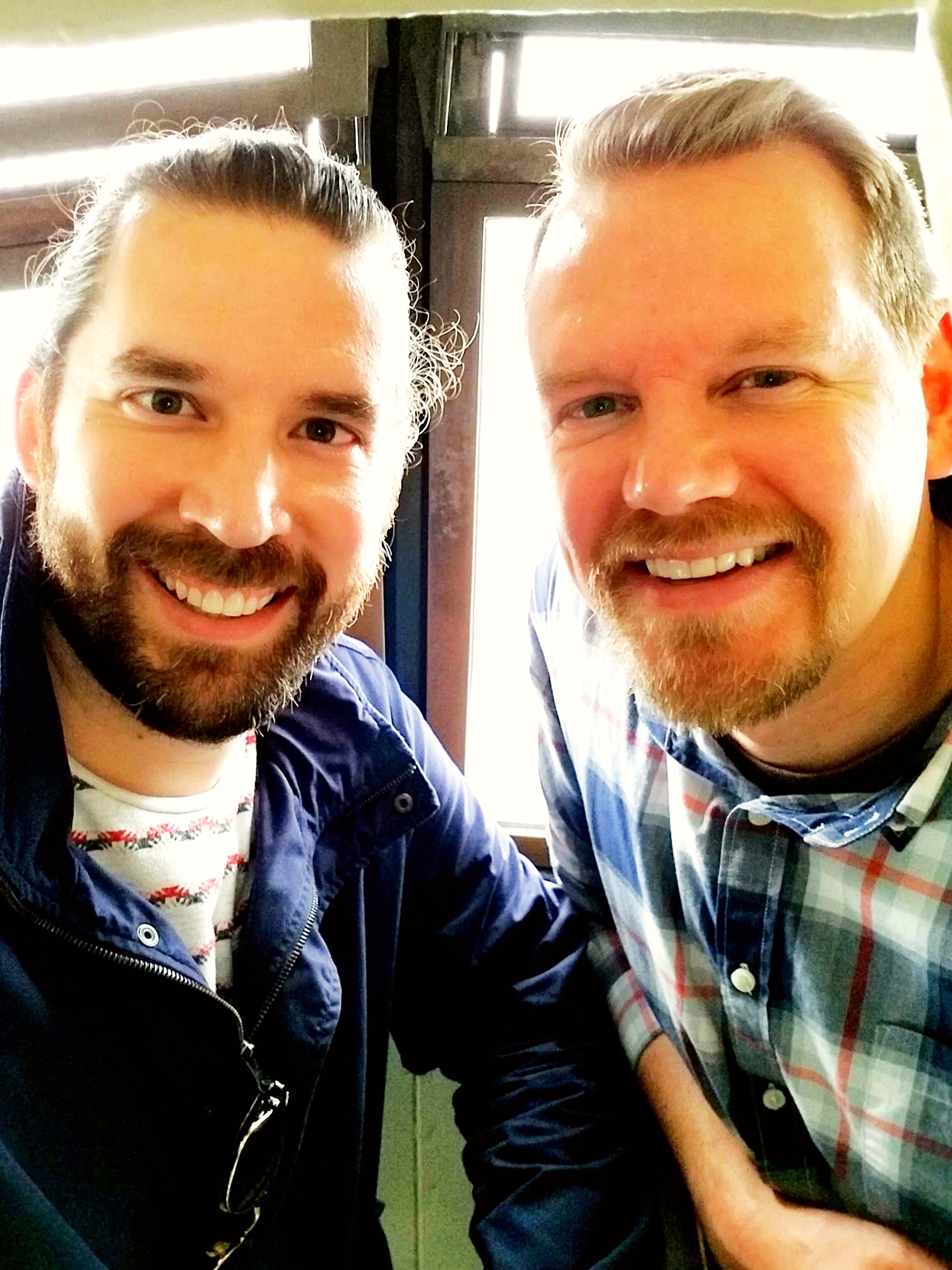 Looking out the window of the crown, lamenting the views we missed because of the weather. Still cool, though!