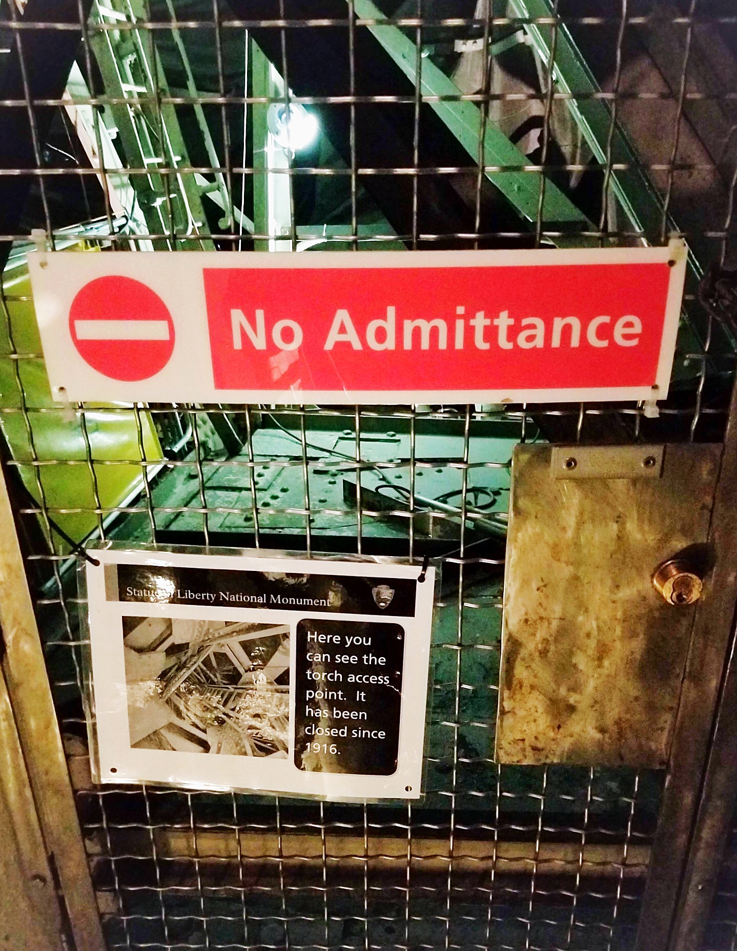 This is the access point to visit the statue’s torch, though it hasn’t been opened for over a century.