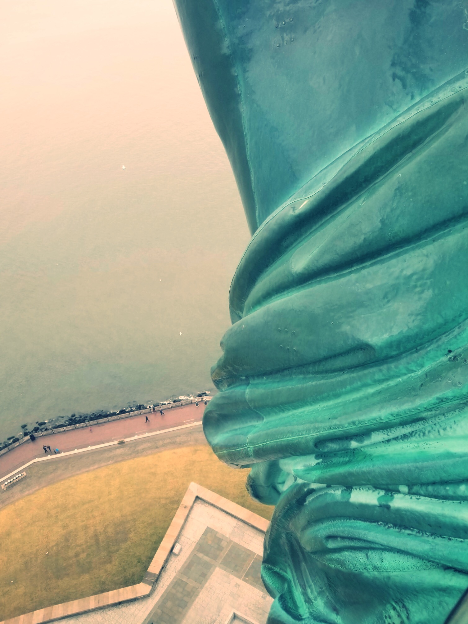 Looking out over Liberty Island after exiting the statue.