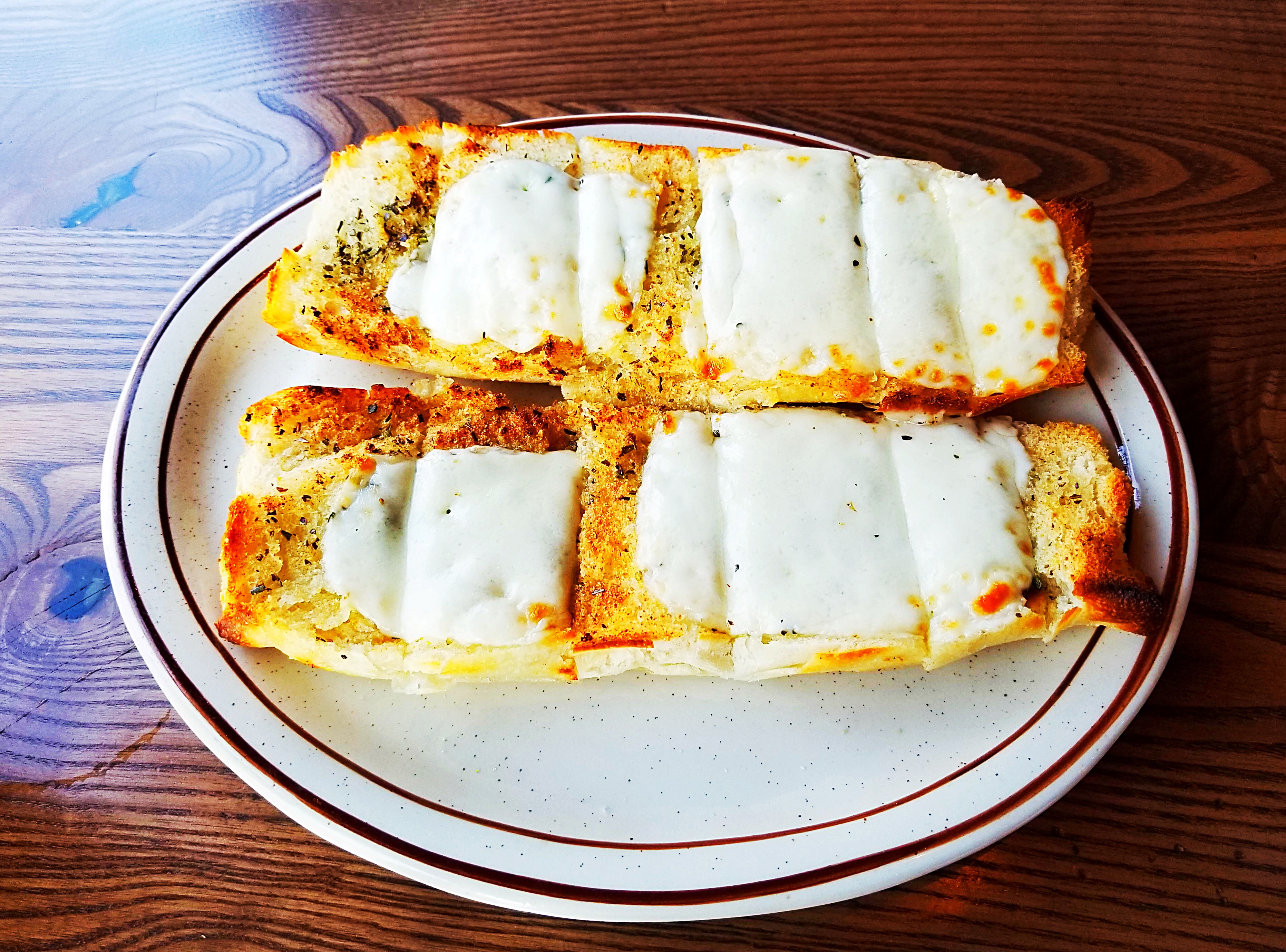 Tasty cheesy garlic bread at Joe and Pat’s.