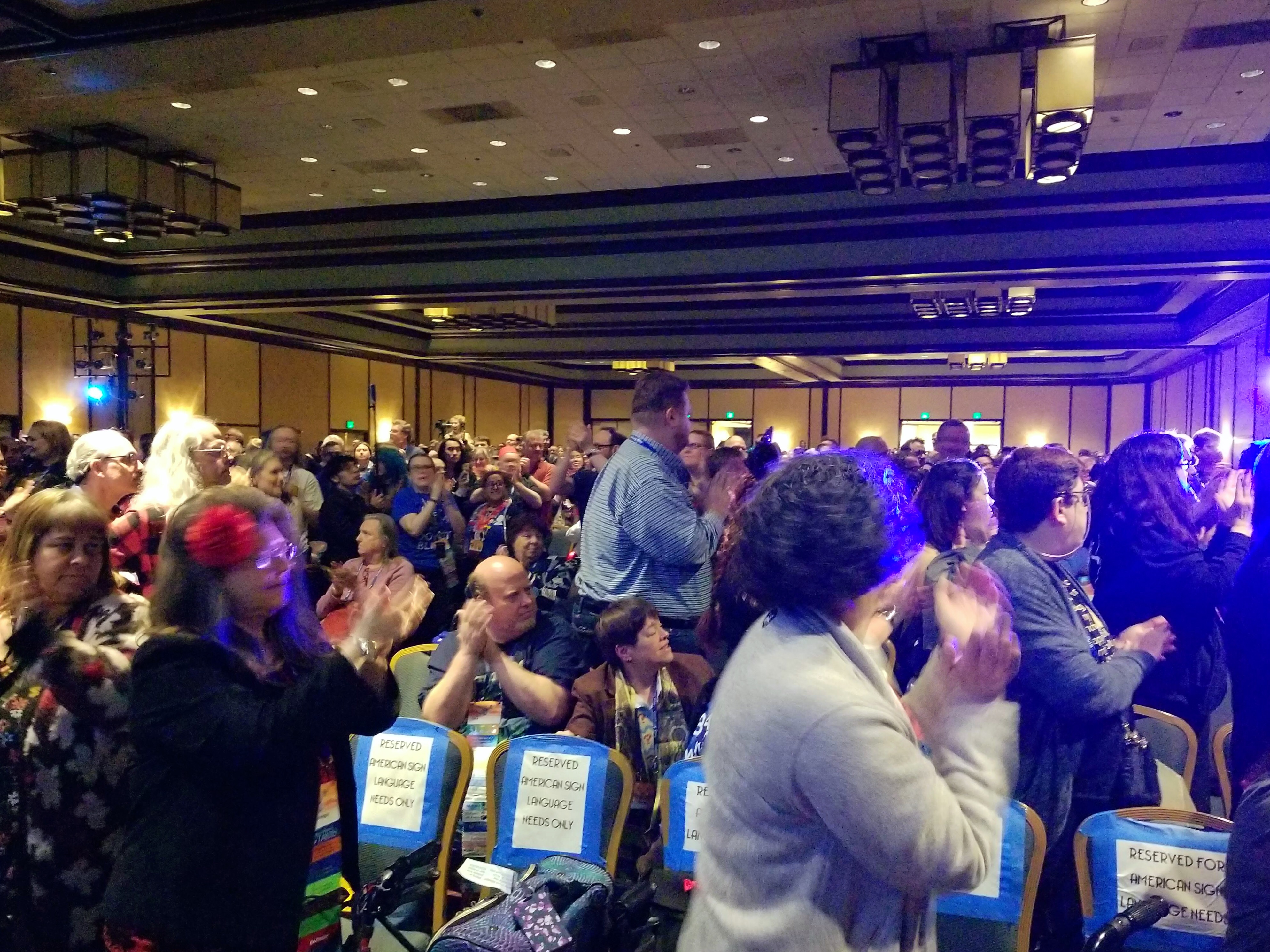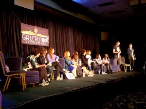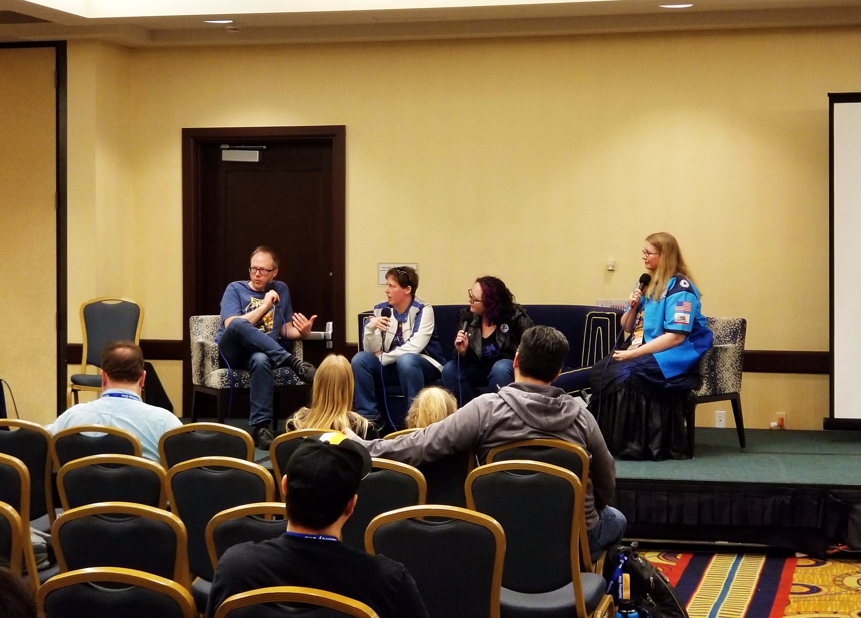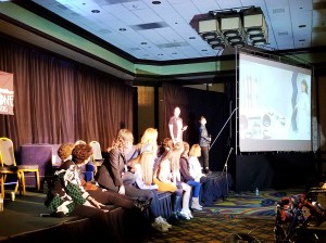 Everyone moved to the edge of the stage to watch the cool video highlighting the accomplishments of women in Doctor Who.