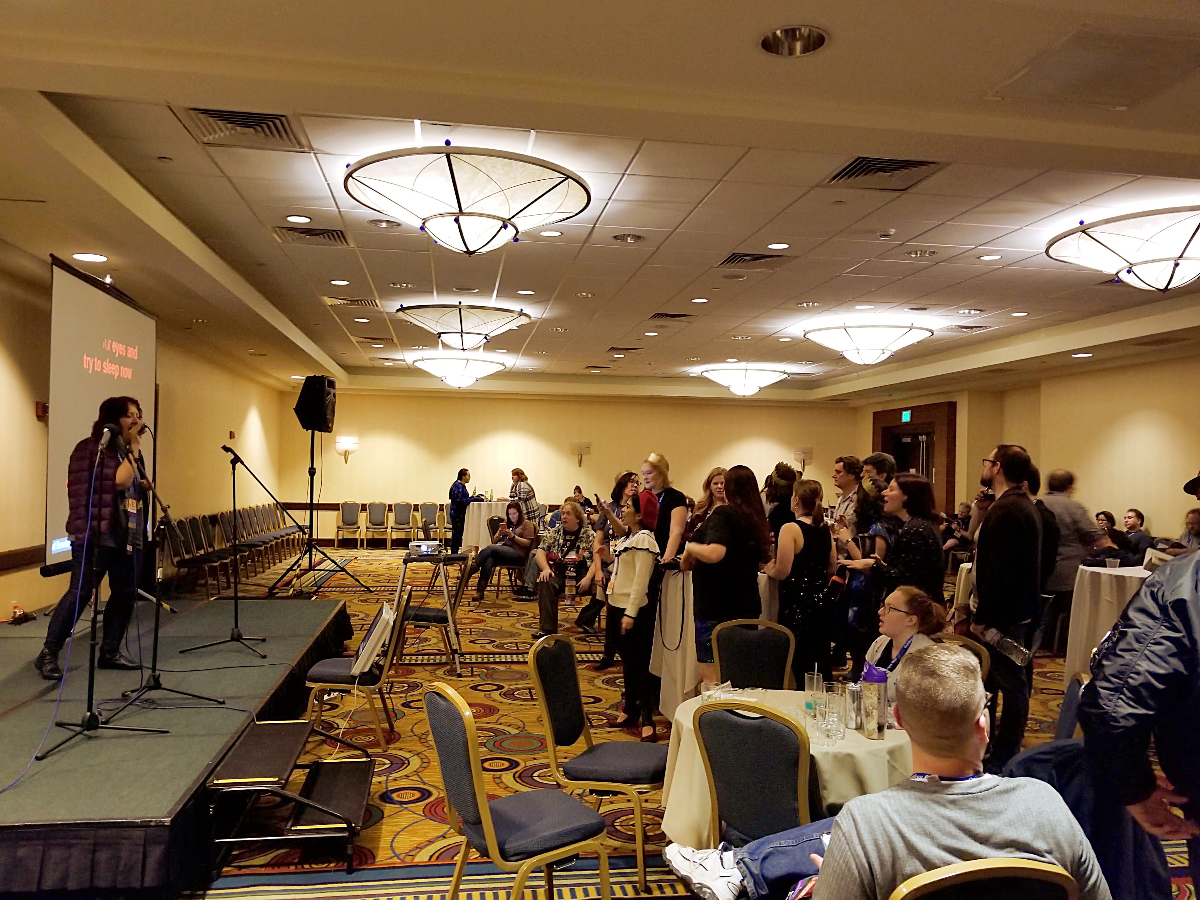 Also on Thursday night (and Friday and Saturday) – karaoke. I’ve been going to this convention long enough to remember when karaoke was just one night in a small function space and it was easy for us to sing more than once.