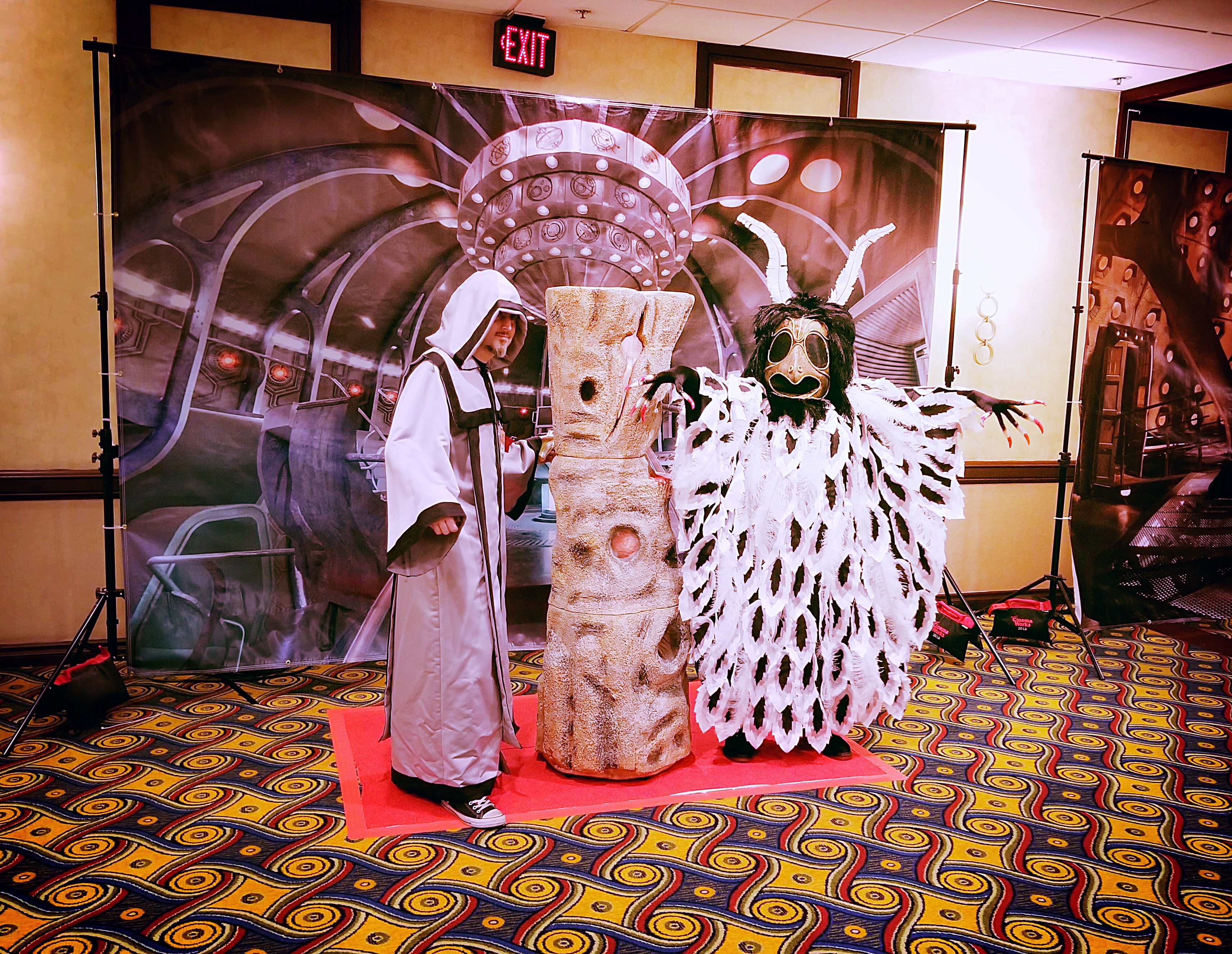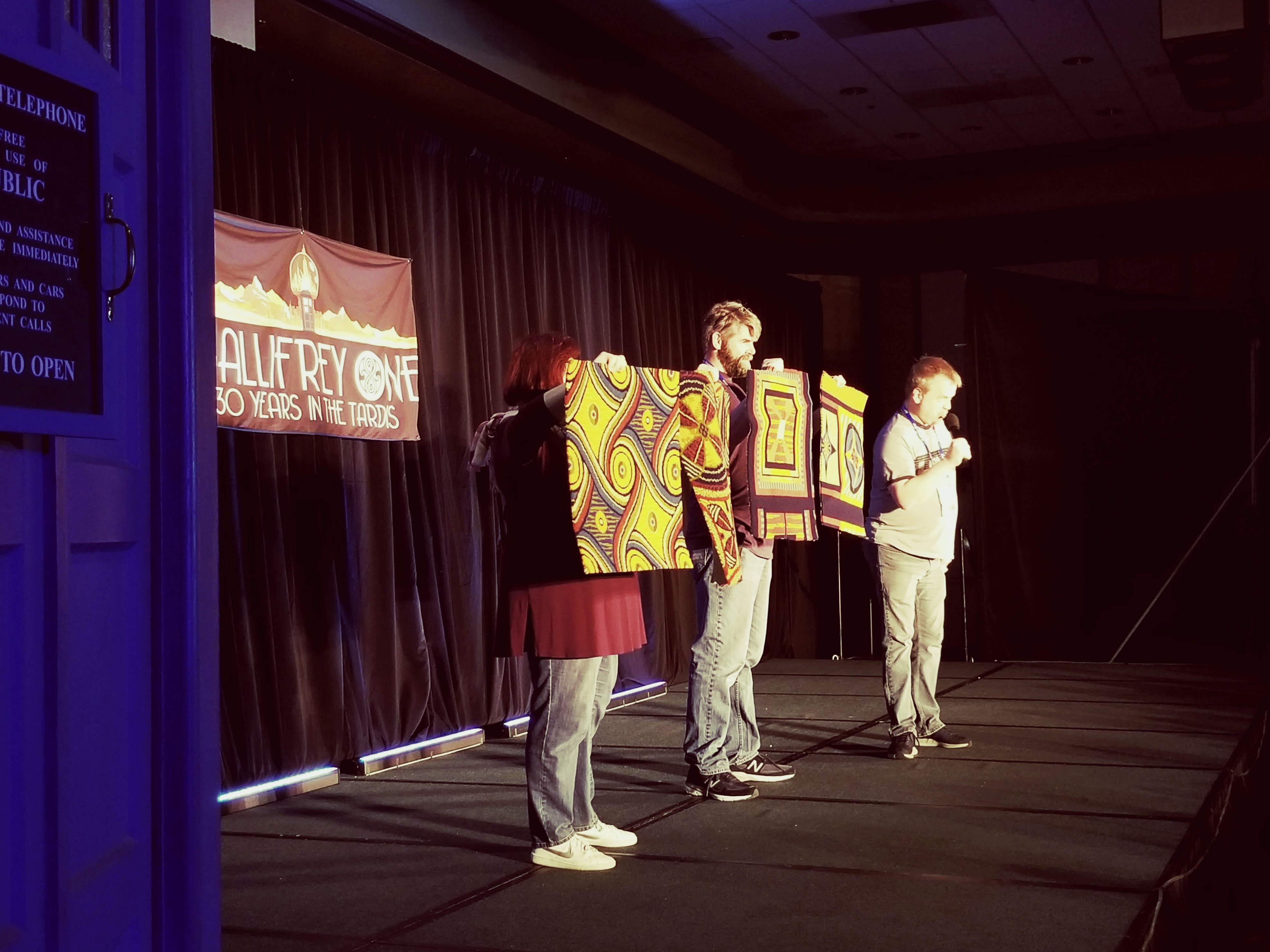 I’m terrible about getting photos of all the fabulous costumes I see at conventions, but I made sure to snap this photo, which features costumes from the Fourth Doctor story The Stones of Blood.
