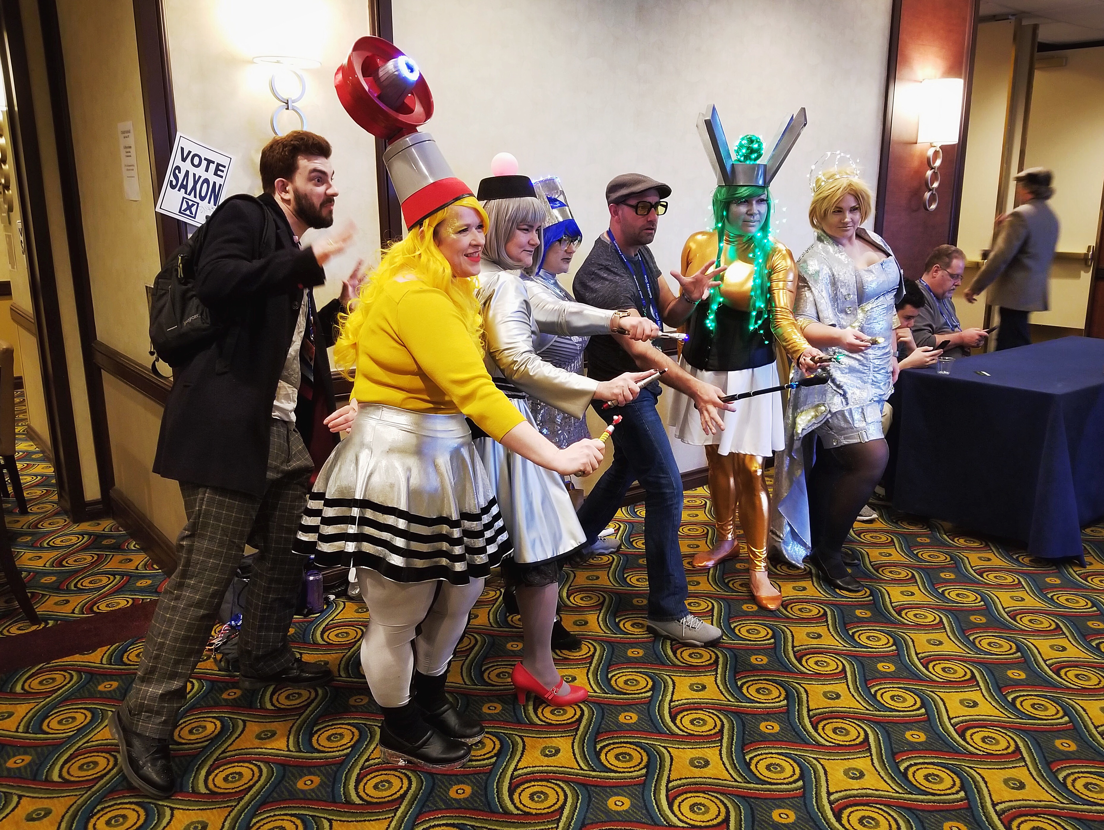 Another cosplay photo – these folks were all dressed as different versions of the Doctor’s trusty sonic screwdriver.