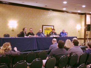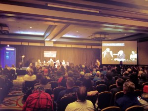 Gallifrey One (or Gally, as we all call it) was once again a success this year. Nearly four thousand attendees and guests descended upon the LAX Marriott and enjoyed a weekend of fun, friends, panels, autographs, photos, and much more. As always, I found myself having lots of fun with friends, especially as we once again had two adjoining rooms, with a third room a few doors down. In particular, my friends Matt and Jason were both back this year for the first time in a few years and it was so great to see them! Also as always, I wasn’t just having fun at the convention, but I was working, too! Wearing my guest liaison hat for the weekend, I had the chance to work with both Yasmin Bannerman (who had a guest spot in second episode of the modern series in 2005, in addition to doing audio work for Big Finish) and Lisa Greenwood (a companion to the Sixth Doctor in his audio adventures for Big Finish) and they were both delightful. Although it technically is “work” I have a lot of fun in my “official” capacity at conventions like this and I look forward to the wide variety of guests I get to work with.
