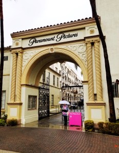 So, Paramount Studios. Their claim to fame is that they’re the only studio still truly inside Hollywood, since other studios have moved further out to places like Burbank (where Warner Bros Studios is). Neat! Additionally, there’s some neat history associated with Paramount because of the way they grew their studio through the purchase of Desilu Productions (founded by Lucille Ball and Desi Arnaz and the heart of classic TV shows like I Love Lucy, Star Trek, and Batman) in 1967. If you’ve been on any kind of studio tour before, you’ll find the Paramount tour to be pretty similar, though of the tours I’ve been on, I found it to be the weakest. That’s not to say I didn’t enjoy it though as I certainly did! But while it seems like other tours give you the chance to see a fair amount of sets and learn about the studio and its history, the Paramount tour seemed to take place mostly in our golf cart, with commentary from our tour guide (who was very good). My opinion may also be biased because of the dreary weather (we were in off-and-on rain for most of the tour) and because there was some fancy art show happening, so there were lots of non-Paramount folks getting in our way (not to mention the bright pink signs for it all over the place). That aside, we learned some fun stuff and had a good time in our small group (it was just four of us from the convention, plus one random guy who booked the same timeslot we did). Expect to pay a visit to a “working” prop house (we were a little dubious of that claim as it felt very set up for visitors as opposed to an actual prop house), do lots of driving around in an oversized golf cart as you learn about the history of Paramount, and get a few peeks at actual sets (we walked up to one open door and got to see a little bit of one set and then stopped to see the outdoor New York City set for a little while).