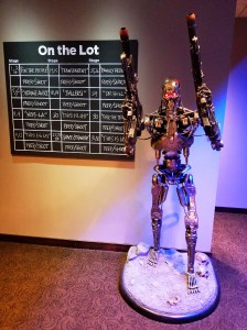 The Terminator, along with a board highlighting what’s filming on the lot.