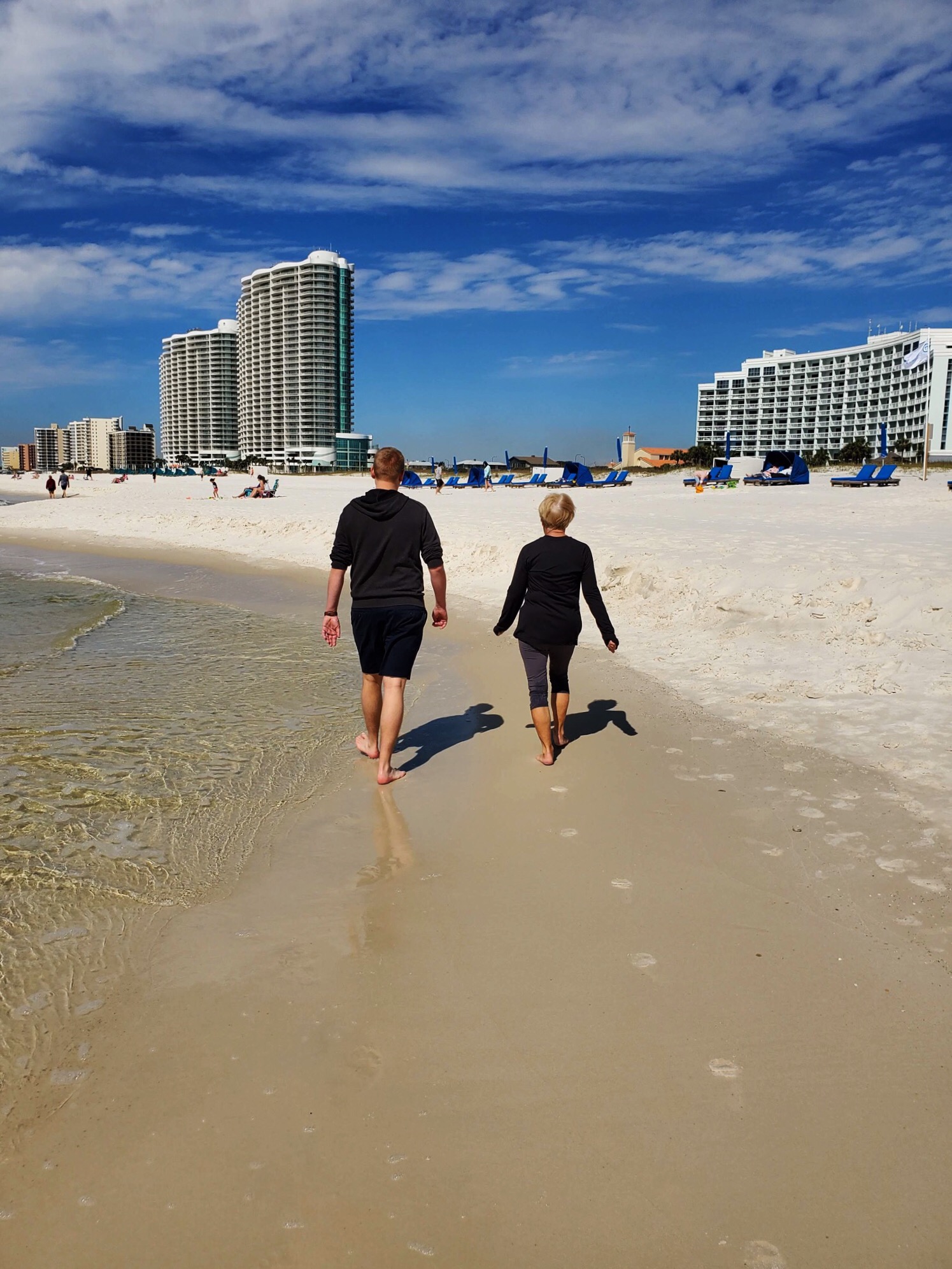 Scott and his aunt (she and his uncle also spend some snowbird time in Orange Beach) on one of our morning walks.