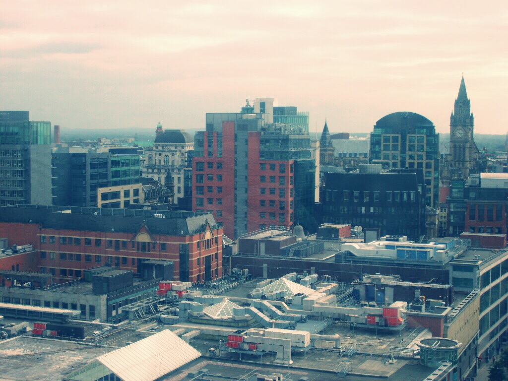 If memory serves, we had two days in Manchester before our drive to Wales and one of those days was the one we arrived. Oddly enough, I have very specific memories of how tired I was that day, but we soldiered on so we could get out and see as much of this new-to-us city as we were able to. After getting a ride to Phil’s from the airport and getting settled and showered up, we went out to explore. I don’t *think* we had any really specific plans for Manchester, but we had fun walking around. We made our way to Piccadilly Gardens, where we hopped a ride on the Wheel of Manchester, which has apparently been dismantled, rebuilt, and dismantled again since we were there. While not as impressive as the London Eye, the day was clear enough for us to get some nice views of Manchester.